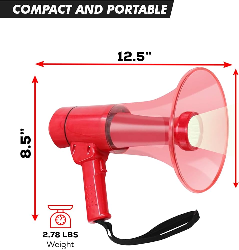 Bull Horn Loud Speaker ideal for fans, coaches, referees, safety drills, camping, beaches, pool parties, boating, life guards, and schools.