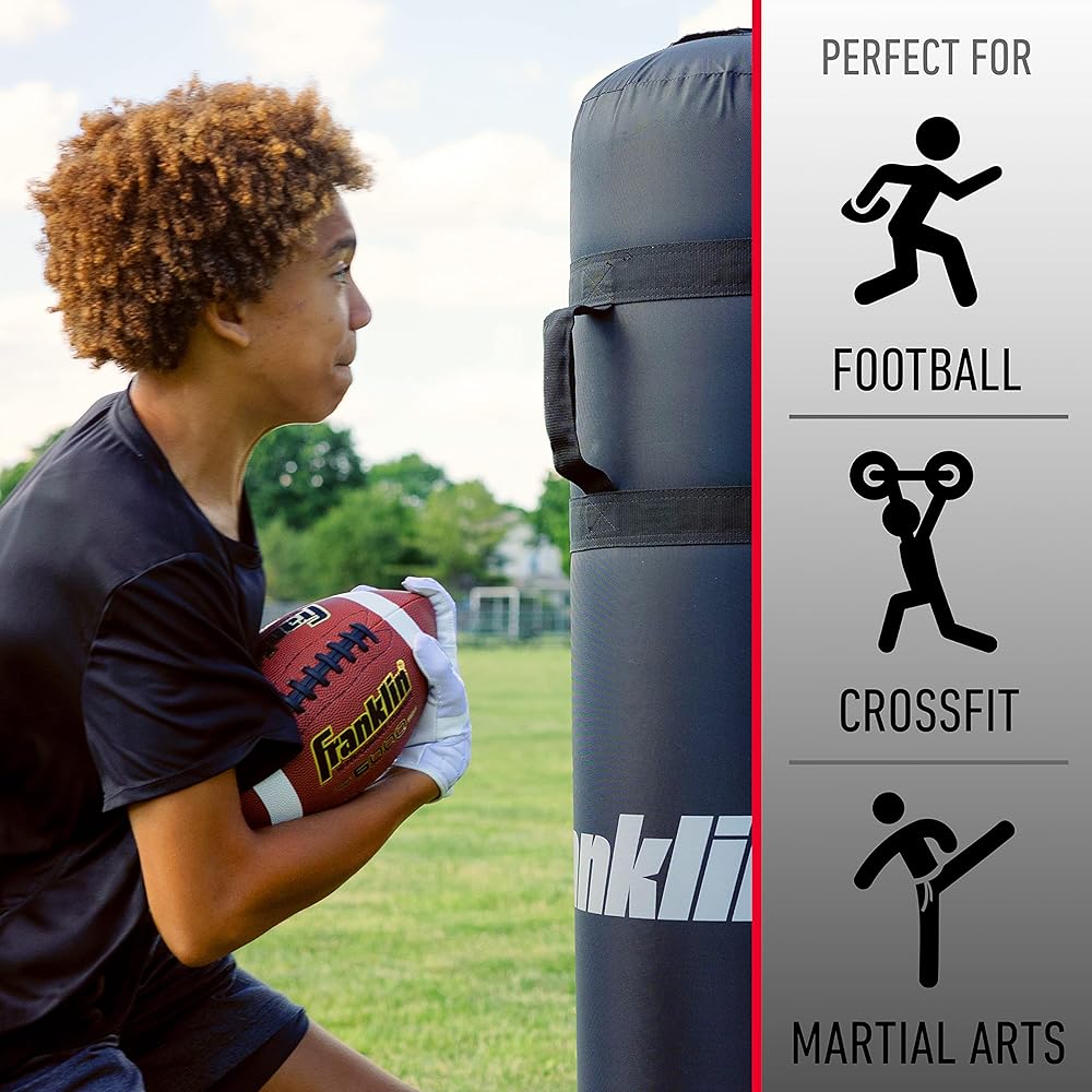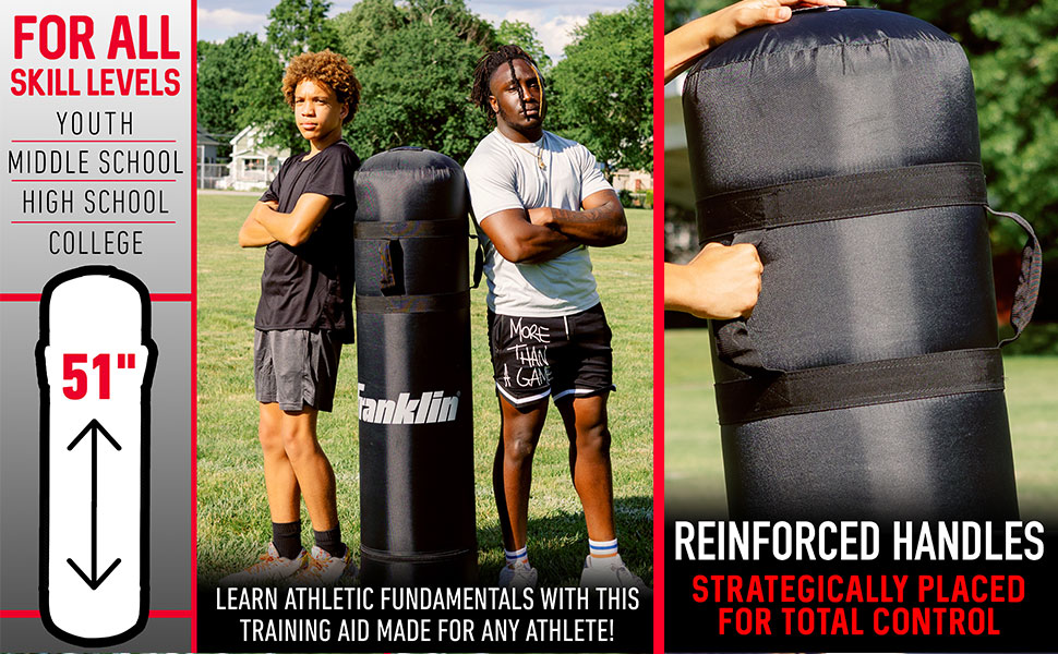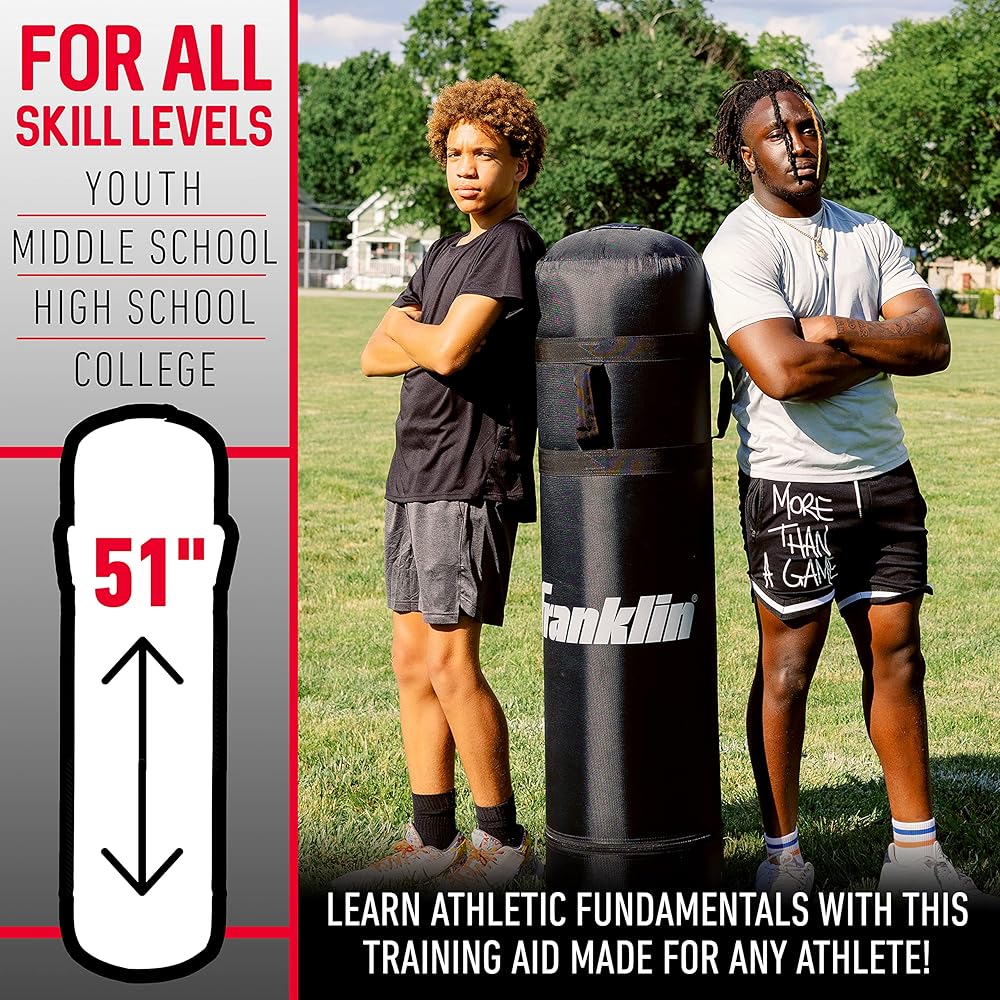 Franklin Sports' Inflatable Football Tackling + Blocking Dummy is the perfect multi-sport piece of training equipment to help athletes practice and perfect their football, martial arts, boxing and wrestling skills! This inflatable dummy is easy to set up and use for a variety of training drills across a wide range of sports. Football players can practice form tackling and other defensive drills to train their football skills between games. Martial artists can practice their punching, kicking, striking and wrestling safely. The versatility of this inflatable tackling dummy makes it perfect for athletes in a variety of sports! Constructed with high-quality materials, this tackling dummy is built to withstand hard contact and absorb impact hit after hit. This 51" inch tall dummy is easily inflated and comes with an inflation pump included for quick setup. So no matter what sport you're training for, the Franklin Sports Inflatable Tackling + Blocking Dummy is the perfect training aid to help take your game to the next level!