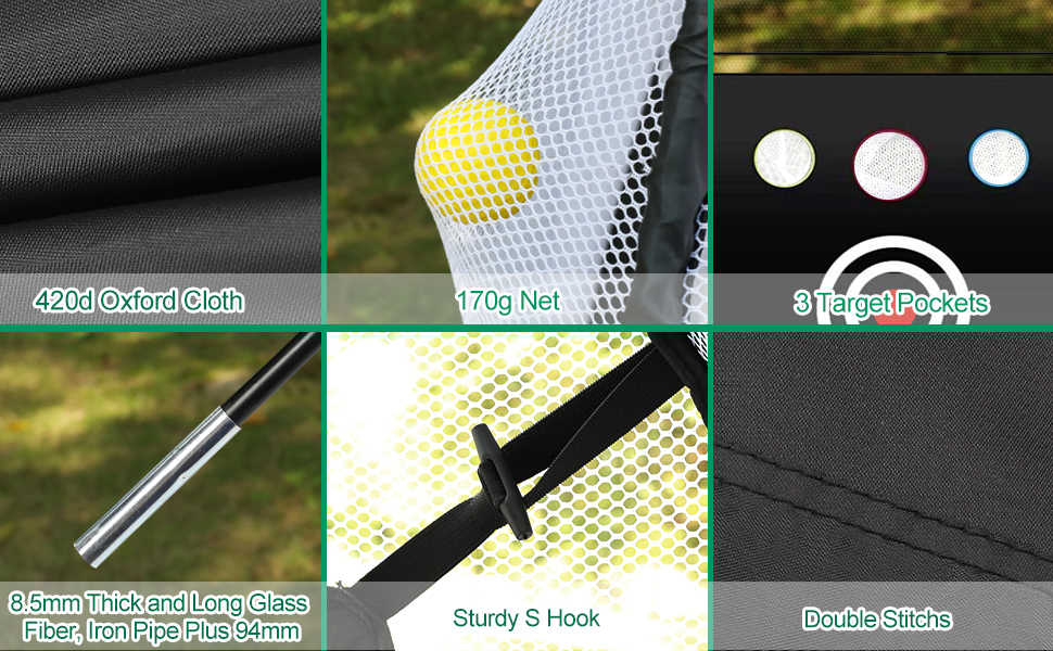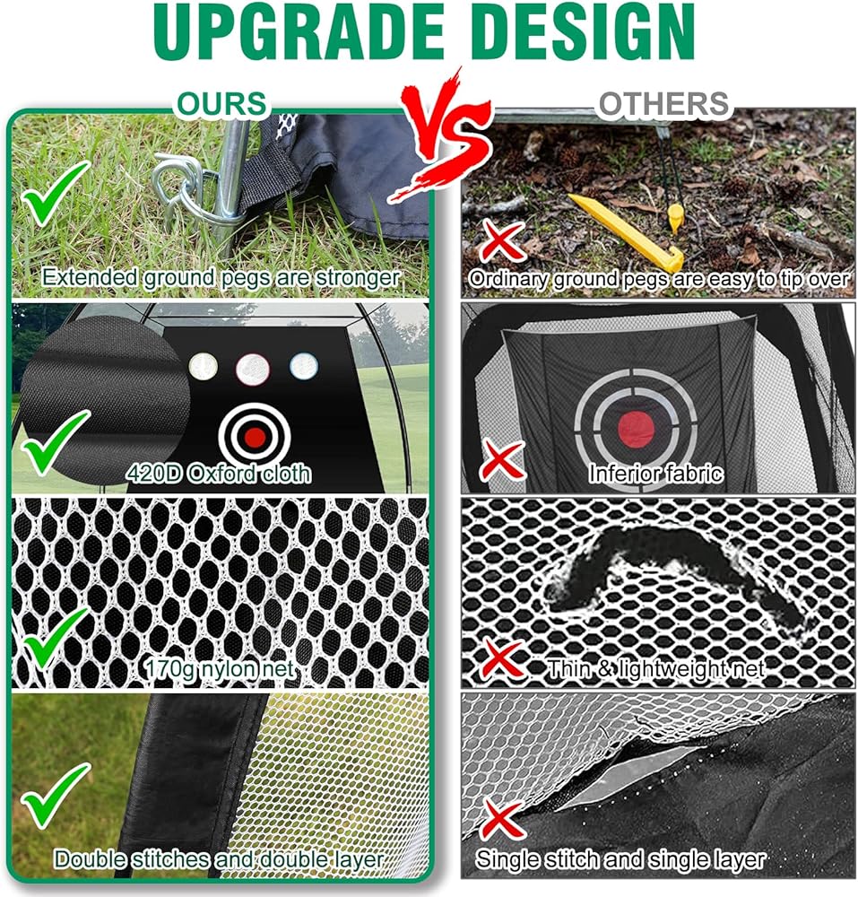 【⛳️شبكة جولف متعددة الأهداف】شبكة تدريب الجولف إيبيل كبيرة بما يكفي للتعامل مع معظم اللقطات البعيدة. لقد قمنا بإعداد ثلاثة أهداف إضافية وشبكة تقطيع واحدة لطلقاتك. سواء كنت لاعبًا مبتدئًا أو مبتدئًا أو لاعبًا متقدمًا، هناك هدف واحد كبير يصقل مهاراتنا الأساسية. تتيح لنا أربعة أهداف أصغر حجمًا أن نكون أكثر مهارة ونضرب الكرة بشكل أكثر دقة. ستساعدك شبكة الجولف هذه على ممارسة التقطيع والقيادة والتأرجح بقوة ودقة بأمان في الفناء الخلفي لمنزلك.