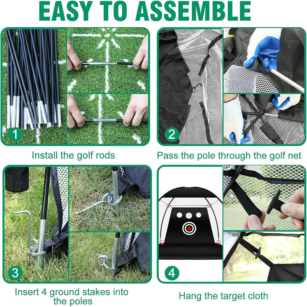 ⛳️ سهلة الحمل والتركيب: يمكن تركيب شبكة جولف إيبيل وإزالتها بسهولة خلال 2-5 دقائق. شبكة الجولف سهلة التركيب يمكن أن توفر وقتك بشكل أفضل، حتى تتمكن من قضاء المزيد من الوقت في الاستمتاع بلعبة الجولف الخاصة بك في الداخل أو الخارج! يمكنك بسهولة تركيب شبكة الجولف في أي مكان، في غرفة المعيشة الخاصة بك، أو الفناء الخلفي (انظر دليل التثبيت). حقيبة الحمل الصغيرة مليئة بجميع الملحقات، مما يوفر المساحة ويسهل حملها.