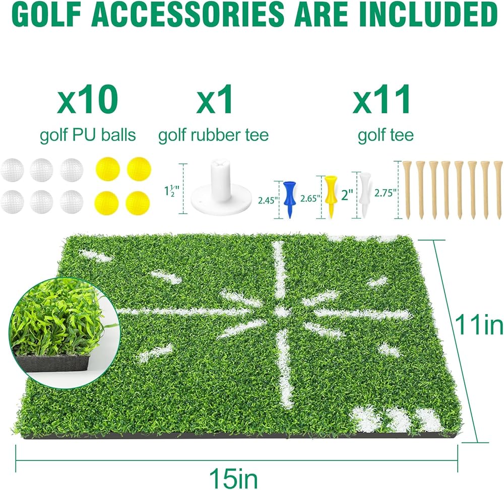 【⛳️شبكة ممارسة ضرب الجولف الكل في واحد】سوف تحصل على: شبكة ضرب الجولف مقاس 10 × 7 × 6 أقدام (عرض*ارتفاع*عمق)؛ 1 × 12 بوصة شبكة تقطيع الجولف؛ 1 × هدف جولف إمباكت؛ 1 × حصيرة الجولف؛ 10 × كرات جولف؛ 11 × تي شيرت جولف، 1 × تي شيرت مطاطي للجولف، 1 × قفازات، وحقيبة حمل. شبكة قيادة الجولف مع بساط الضرب هي معدات تدريب الجولف المثالية لممارسة المهارات مثل ضربات المحملة والتأرجح والتقطيع. يمكنك بسهولة ممارسة كل نادي في حقيبة الجولف في المنزل أو في الهواء الطلق، مما يوفر المال والوقت.