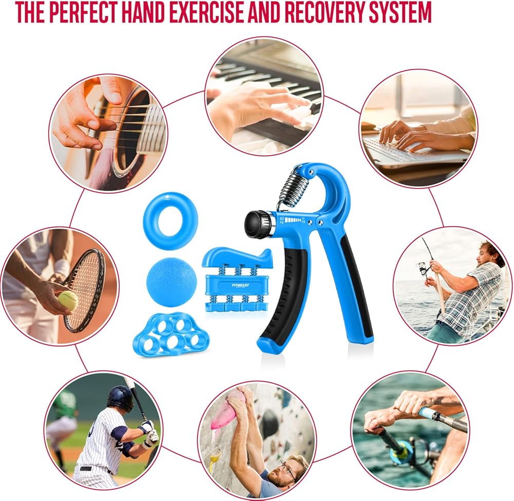 𝗦𝘂𝗶𝘁𝗮𝗯𝗹𝗲 𝗙𝗼𝗿 𝗘𝘃𝗲𝗿𝘆𝗼𝗻𝗲 — مناسب لمختلف الأنشطة، بما في ذلك تدريب القوة وإعادة التأهيل والرياضة وتخفيف التوتر. رافعو الأثقال، وتسلق الصخور، والفنون القتالية، والتنس، والجولف، والمصارعة، والبيسبول، حيث تعد قوة القبضة أمرًا بالغ الأهمية للأداء. بالإضافة إلى ذلك، يمكن للموسيقيين، وخاصة عازفي الجيتار وعازفي البيانو وقارعي الطبول والعاملين في المكاتب وكبار السن الاستفادة من استخدام المقابض اليدوية.