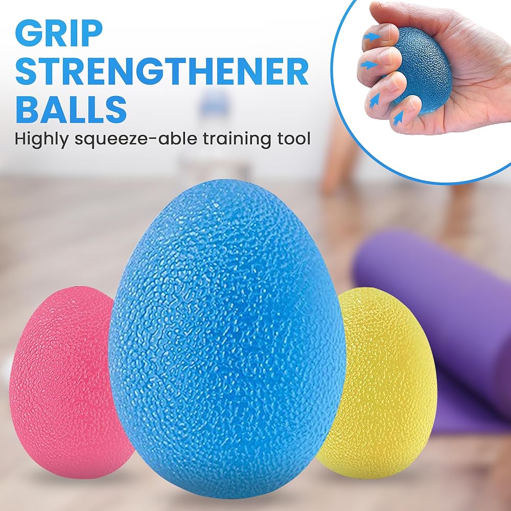 ✅ 【 Effective Grip 】These 3 balls can help strengthen hands and improve finger mobility. The textured surface of the balls helps to improve circulation and reduce stress. The egg-shaped design of these grip balls provides a comfortable and effective grip that helps to strengthen the muscles in the hands and fingers. They are ideal for those who suffer from arthritis, carpal tunnel syndrome, or other conditions that affect the hands and fingers.