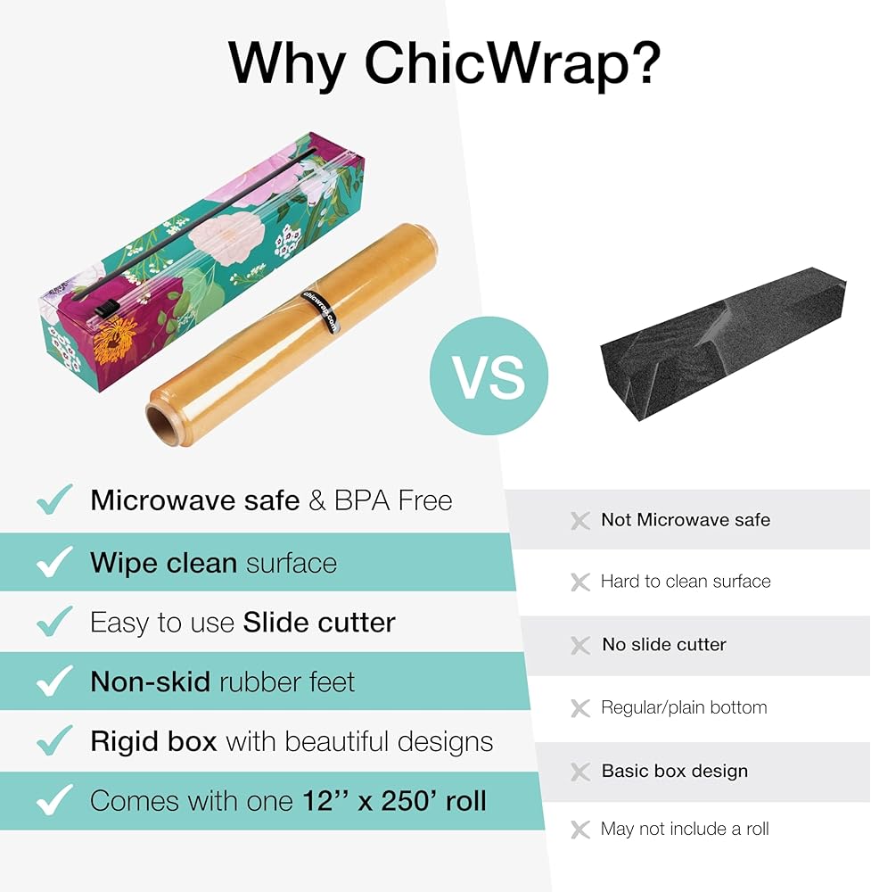 سيشكل موزع التغليف البلاستيكي الليموني القابل لإعادة الاستخدام من شيك راب إضافة رائعة لأي مطبخ. التصاق أفضل، تمدد أفضل وقوة أفضل! تتضمن لفة واحدة مقاس 12 انش × 250 انش من الغلاف البلاستيكي الاحترافي. مصنوعة من مواد عالية الجودة من أجل ثبات أقوى! كل موزع مصنوع من مواد عالية الجودة لصنع منتجات متينة وتدوم طويلاً. يتميز بأربعة أقدام مطاطية لتحقيق الثبات على أي سطح. توفر أداة التقطيع المنزلقة المبتكرة من شيك راب توزيعًا وقصًا مثاليين دون استخدام شفرة المنشار الخطرة. يأتي الغلاف البلاستيكي الاحترافي من شيك راب في لفة مقاس 12 انش × 250 انش