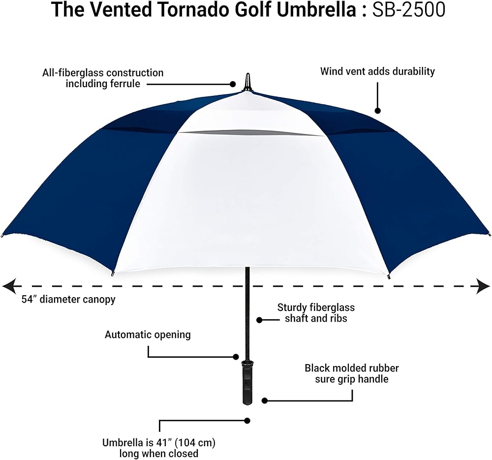STROMBERGBRAND UMBRELLAS The Vented Tornado 64" Windproof Waterproof PGA Professional Quality Ultimate Portable Golfers Auto Open Golf Umbrella for Men and Women