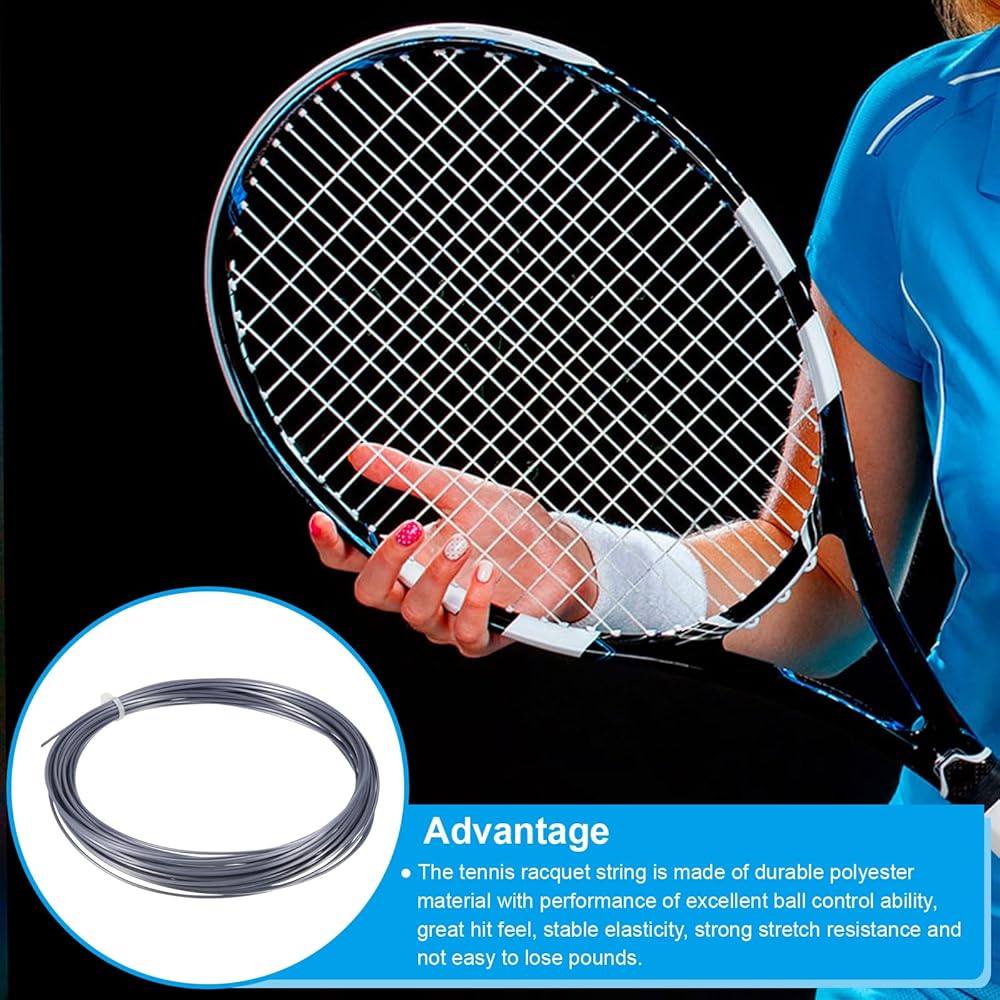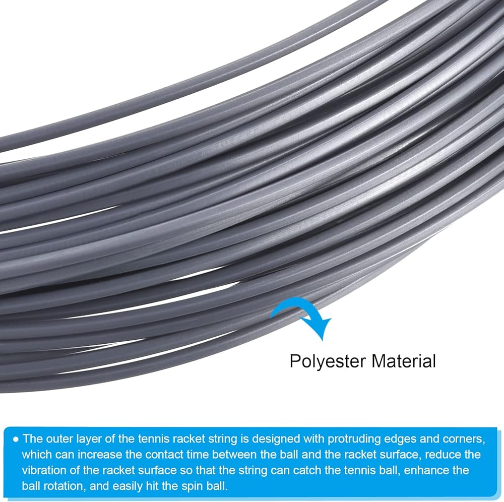 1. The tennis racquet string is made of durable polyester material with performance of excellent ball control ability, great hit feel, stable elasticity, strong stretch resistance and not easy to lose pounds.