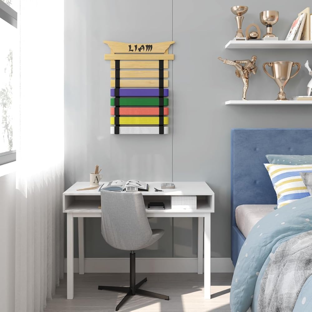 الأحزمة والجوائز – تأتي شاشة عرض Milliard الحاصلة على براءة اختراع مع 8 لوحات لحمل أحزمتك، وطرفين لتعليق الجوائز الخاصة بك منهما. يعمل مع أحزمة الكاراتيه والتايكوندو والفنون القتالية المختلطة وغيرها من الأحزمة.