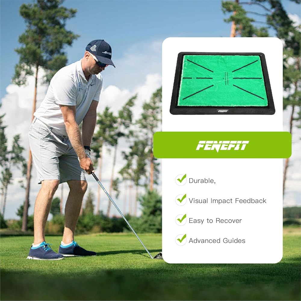 Golf Hitting Mat, FENEFIT Golf Practice Mat for Swing Path Feedback/ Detection Batting Golf Training Mat Advanced Guides and Rubber Backing for Home/Indoor/Outdoor