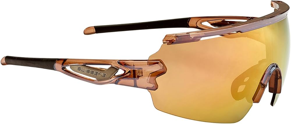 Scope of delivery: SWISSEYE Signal sports glasses - incl. microfiber bag & case - material: TR90 (frame), polycarbonate (lens) - color: shiny laser crystal brown/black (frame), brown gold Revo (lens)