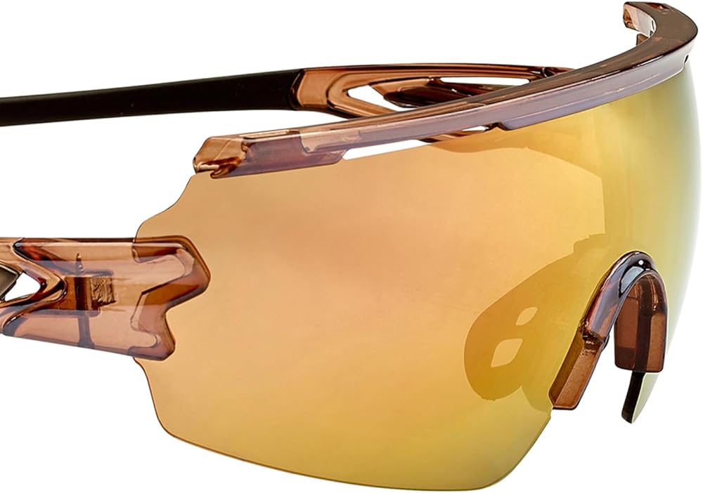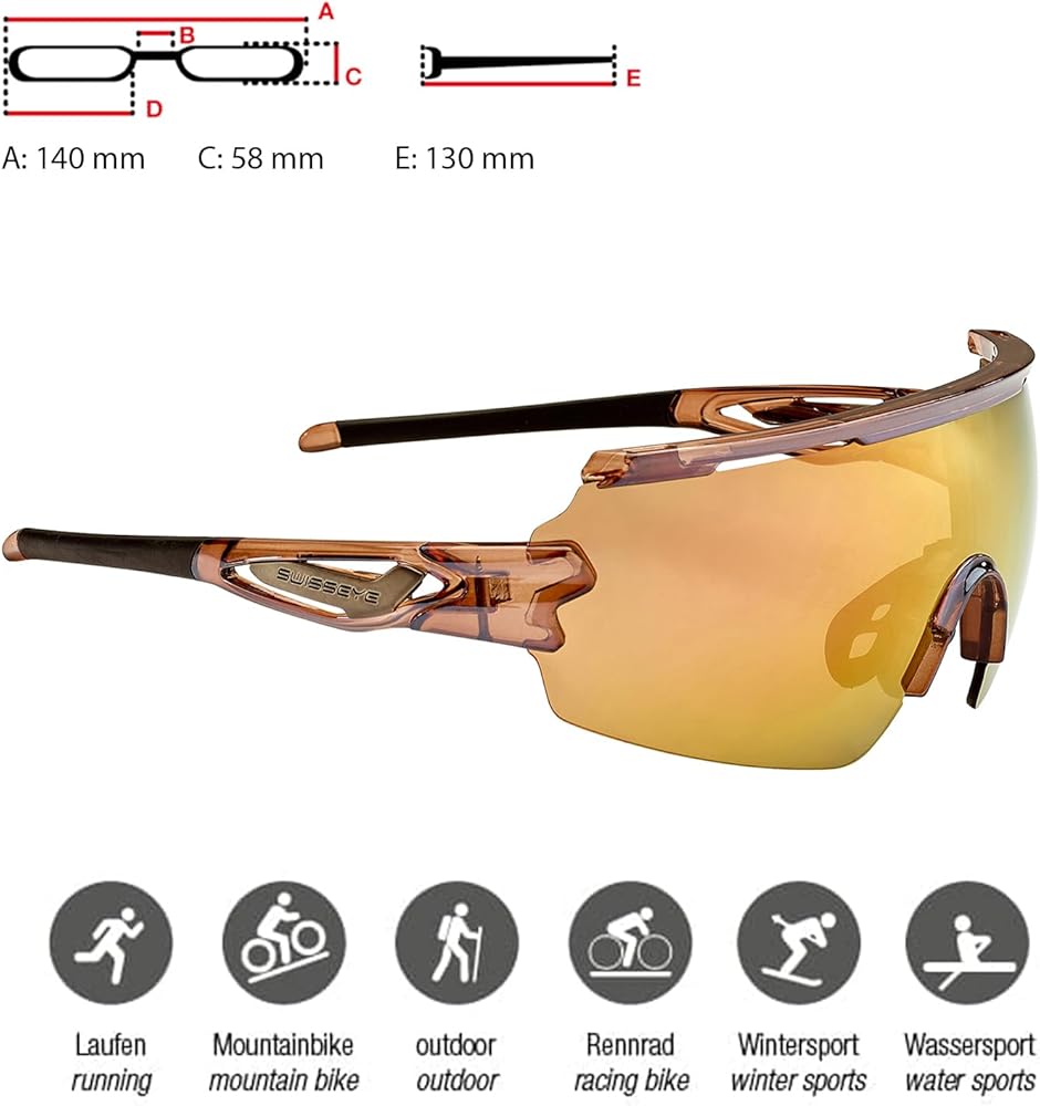 Complete set: The sports glasses come with lenses in the color brown gold Revo. Also included is a case for storage and a microfiber bag for easy cleaning of the glasses.