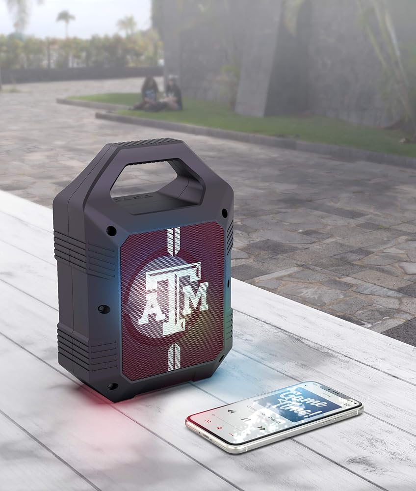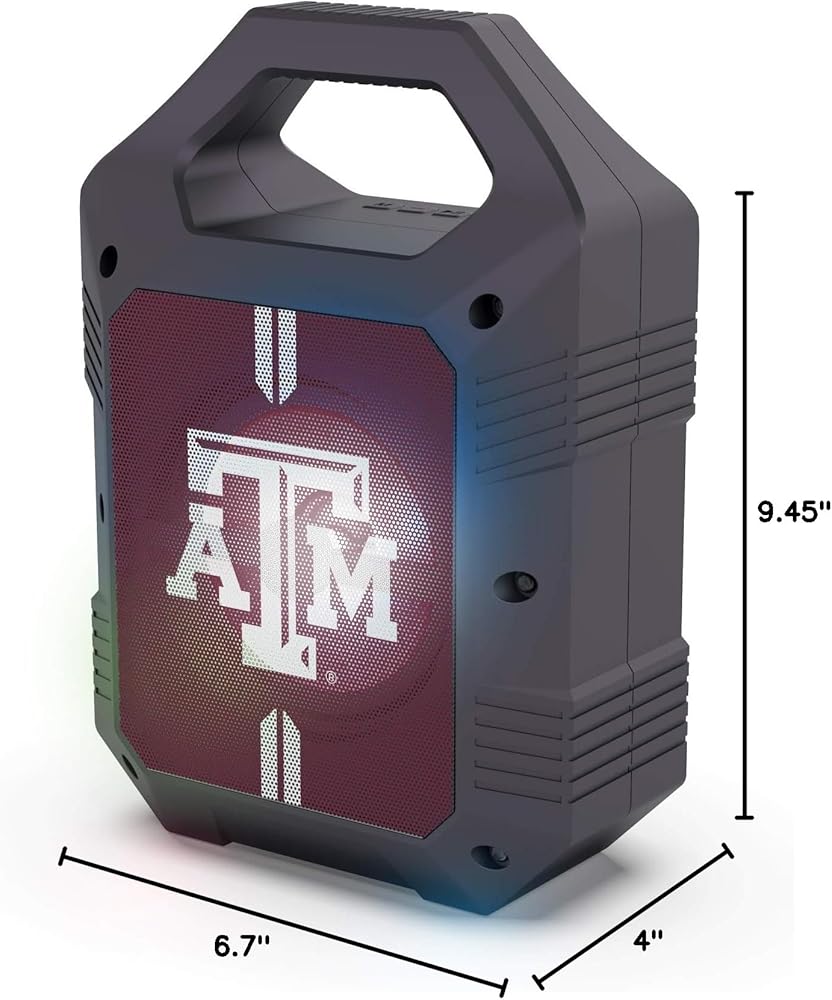 The SOAR XL LED Speaker is the perfect speaker for your next tailgate or camping trip. Light weight with a convenient top handle for easy portability and storage. Bluetooth 5.0 technology, AM/FM radio, USB, and Aux inputs, play your music your way. Easily sync two together for stereo sound. Over 5 hours of use time per charge, micro-USB cable included. Officially Licensed NCAA Product, a great way to show your team spirit any time and anywhere.