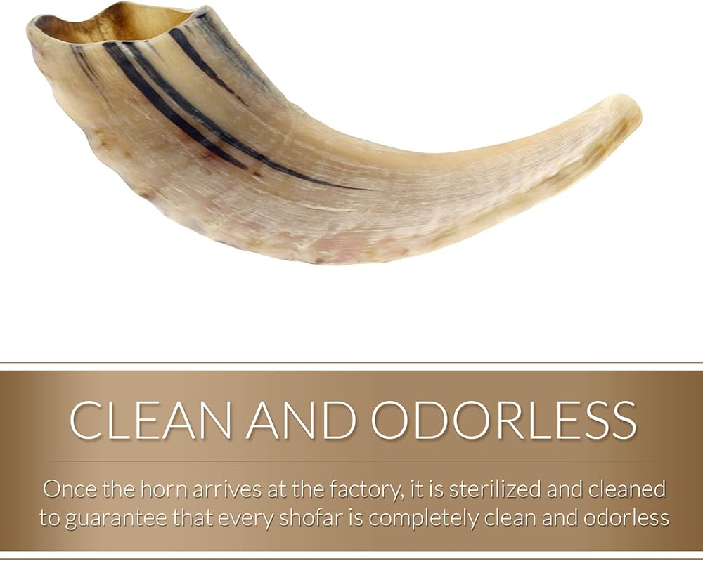 • CLEAN and ODORLESS- Once the horn arrives at the factory, it is sterilized and cleaned to guarantee that every shofar is completely clean and odorless. These Shofars are authentic and each of them has its own one-of-a-kind unique beauty.