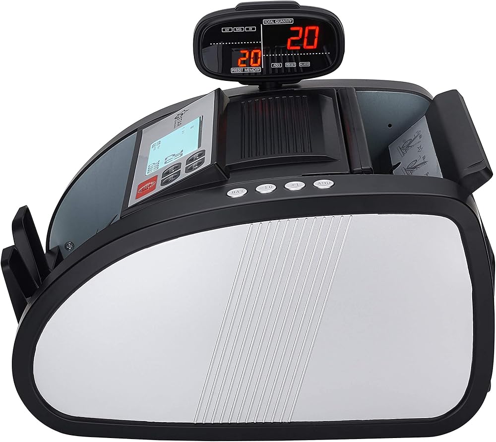 • [سهل الاستخدام] يحسب عدد الفواتير الموجودة في المكدس بسرعة ودقة. شاشة LCD سهلة القراءة وقدرة الاختبار الذاتي التلقائي.