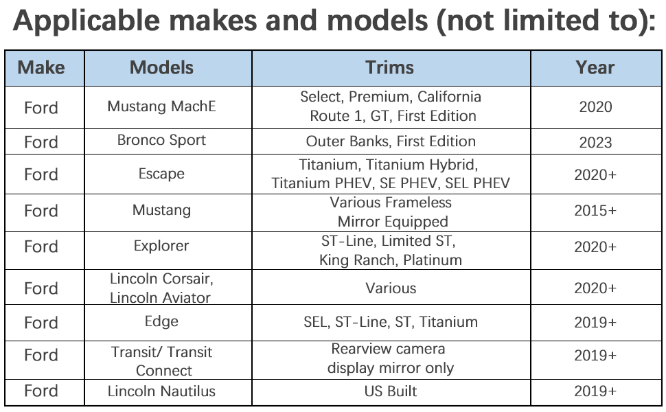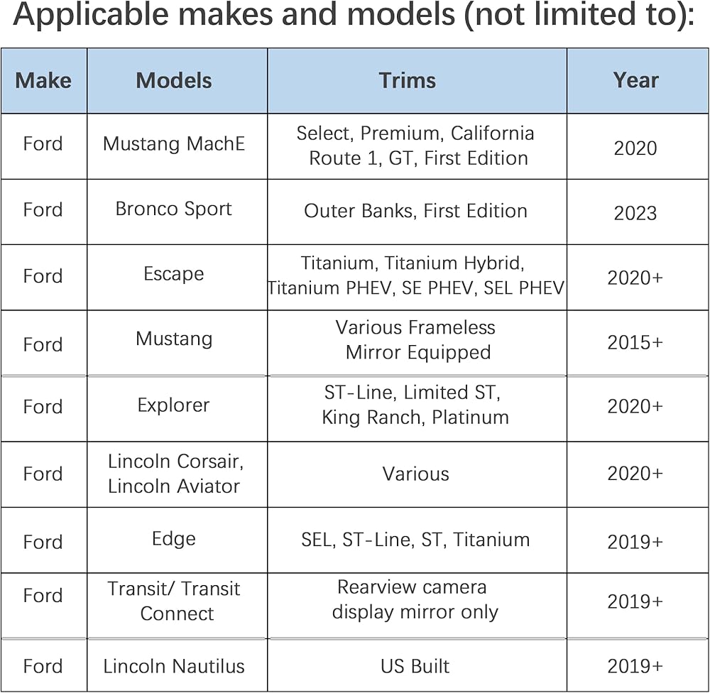 • 【النماذج القابلة للتطبيق: إذا لم يكن طراز سيارتك مدرجًا في الصورة، فيمكنك التحقق من عدد الدبابيس ومظهر موصل مرآة التعتيم التلقائي لسيارتك، فإن محول الطاقة الخاص بكاميرا أجهزة القياس هذا مناسب لاختيار Ford Bronco Sport وExplorer وMach- E وأكثر، وقد يكون متوافقًا مع ماركات وموديلات أخرى للسيارات، يمكنك إخبارنا بطراز السيارة لمساعدتك في العثور على محول الطاقة الصحيح.