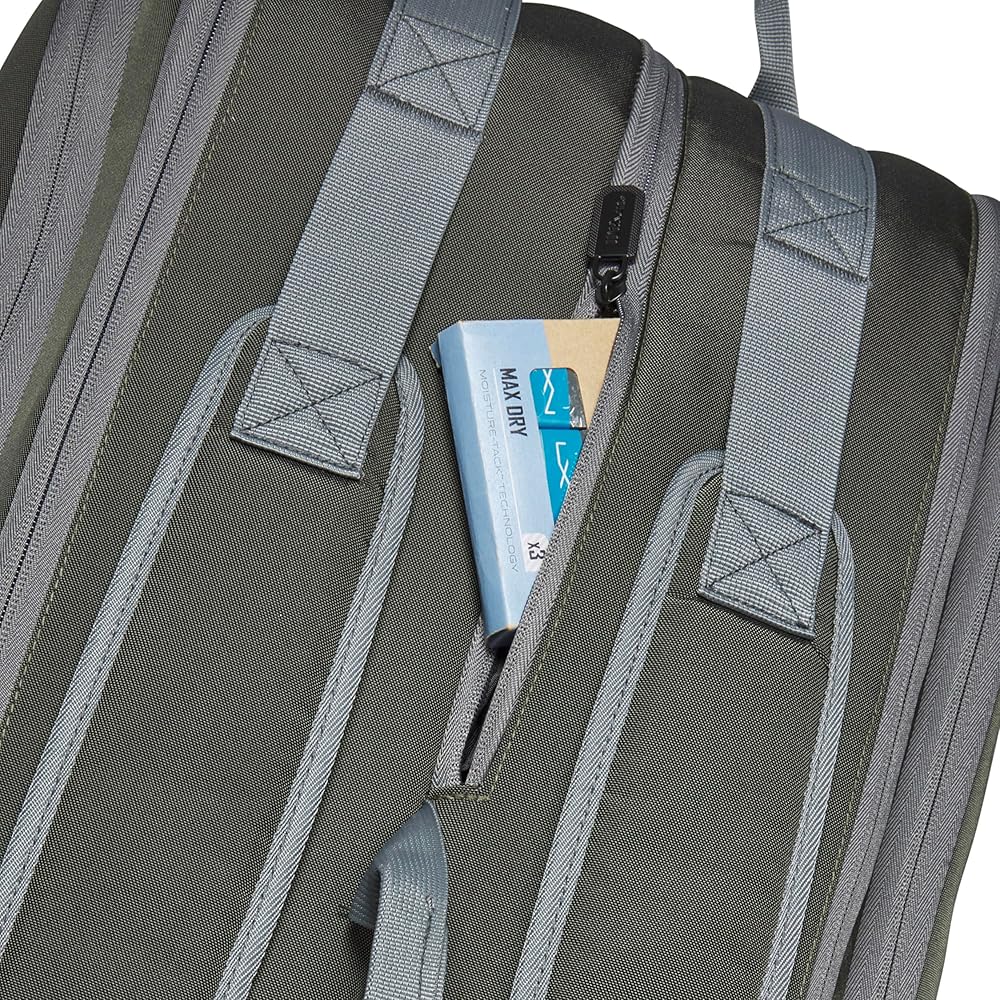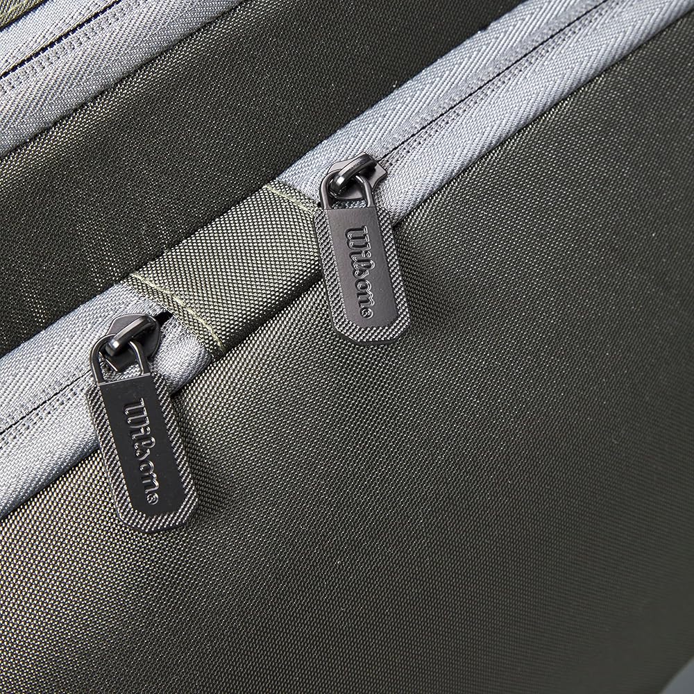 تحمل ما يصل إلى مضربين؛ حافظة الكمبيوتر المحمول: تخفي وتحمي الكمبيوتر المحمول أو الجهاز اللوحي أو أي جهاز آخر. حجرة المضرب الجزئية: الحجرة التي تحيط بالمضرب وتؤمنه بسحابات القفل.