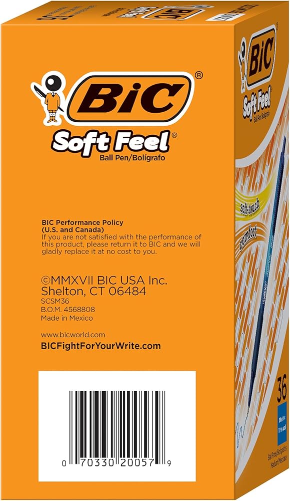 Experience soft-touch comfort when writing with BIC Soft Feel Assorted Colors Retractable Ballpoint Pens. These assorted ball pens are great for everyday writing at work, school or home with their 1.0mm medium point. These ball point pens have smooth ink that writes fluidly and effortlessly. With a comfortable grip, they're the ideal ball point pens for writing lists, taking notes, journaling and more. This BIC pens bulk pack is a smart choice for adding to school supplies or office supplies. The round barrel features a no-slip grip that offers a comfortable hold, making it ideal for prolonged writing sessions. Plus, the plastic clip easily attaches to pockets, notebooks and more for quick access on the go. Designed for convenience, these retractable medium point pens let you start writing with just one click. These blue and black pens are smooth writing pens that are easier to use for long periods of time than a standard ballpoint. With this 36-count pack of pens with both black ink pens and blue ink pens, you can stock up on dependable BIC ballpoint pens. Looking for reliable pens for school or office supplies? Choose BIC Soft Feel Assorted Colors Retractable Ballpoint Pens for a high-quality, affordable product you can trust.
