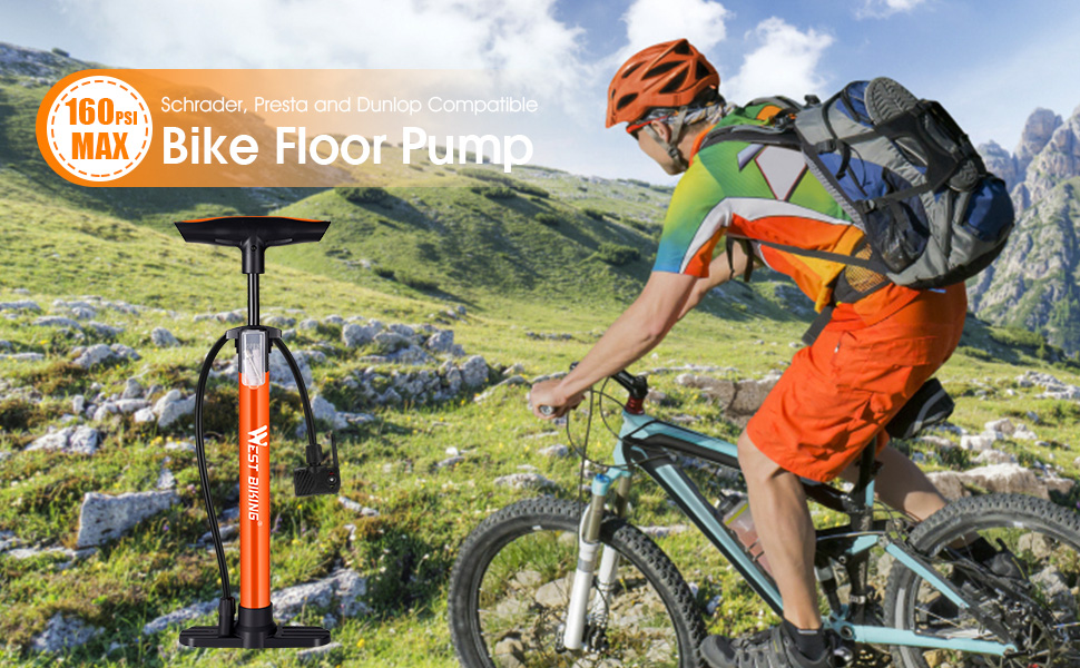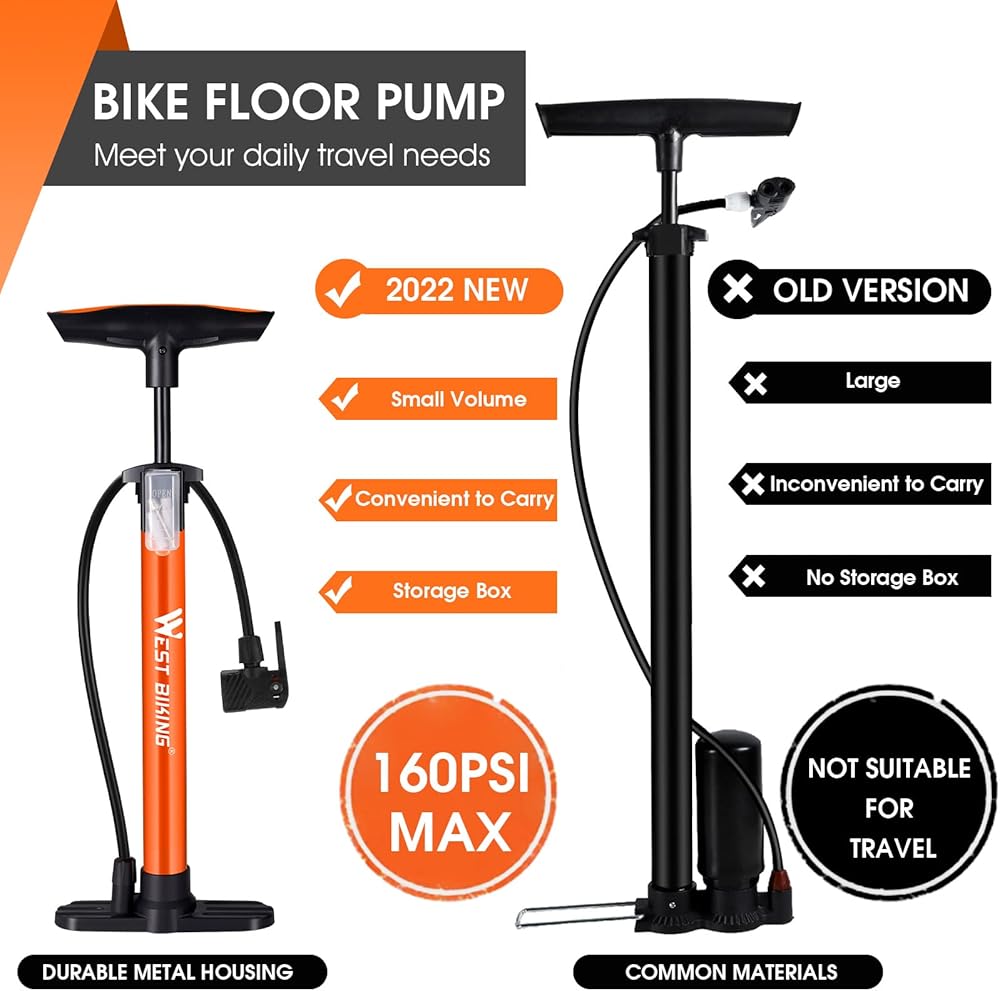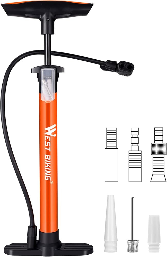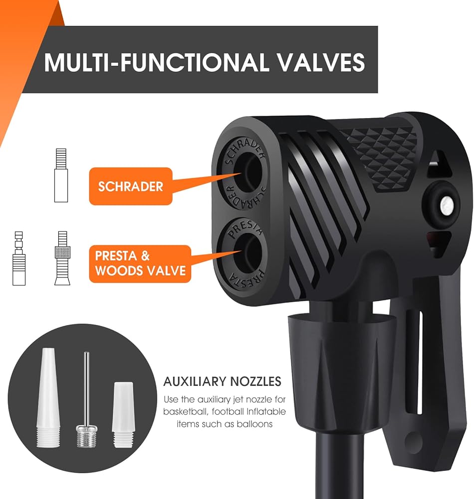 مضخة هواء للدراجة 160 رطل لكل بوصة مربعة، مضخات إطارات الدراجة المحمولة مع صمام شريدر وبريستا، مضخة هواء صغيرة للدراجة الأرضية مع إبر كروية وفوهة بالونات، منفاخ لكرة السلة