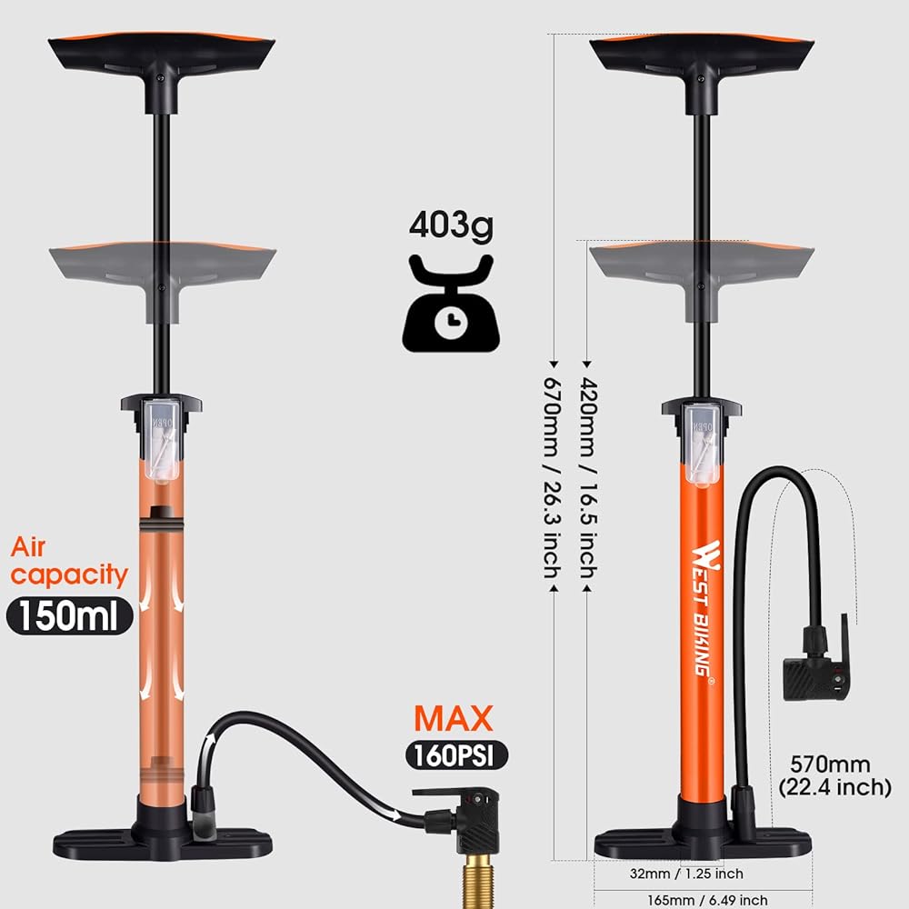 【خفيفة الوزن وقابلة للحمل】الوزن الصافي لمضخة هواء الدراجة هذه هو 0.89 رطل، وحجمها 16.5 × 6.5 بوصة. وهي خفيفة الوزن أكثر من معظم مضخات الدراجات الأرضية الأخرى. من السهل حمل مضخة الدراجة في رحلة ركوب طويلة، ما عليك سوى وضعها في حقيبة الرف الخلفي