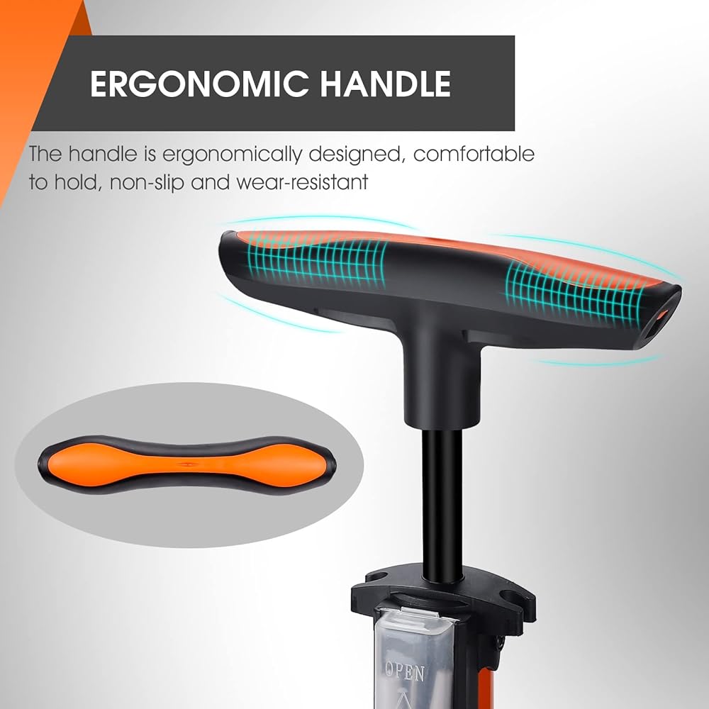 【ضغط عالٍ 160 رطل لكل بوصة مربعة】بالنسبة لمضخة الدراجة، القطر الأصغر للأنبوب الرئيسي، كلما كان ضغط الهواء الناتج أقوى، يمكن للأنبوب الرئيسي بقطر 1.25 بوصة أن ينتج ضغط هواء بحد أقصى 160 رطل لكل بوصة مربعة. نظرًا للأنبوب الرئيسي الفولاذي بسمك 1 مم والقضيب المعدني، يمكن لمضخة الهواء أن تتحمل هذا الضغط بسهولة ولن تنكسر أبدًا أثناء الاستخدام. تساعدك قاعدة النايلون والمقبض المريح على النفخ بسهولة أكبر