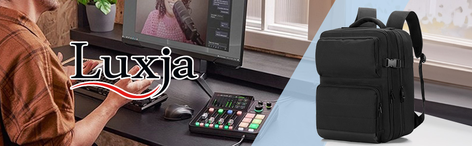 LUXJA Audio Mixer Backpack Compatible with RODECaster Pro II, RODECaster Pro, DJ Mixer Travel Bag with 15.6 Inch Laptop Sleeve Fits for Behringer Q1202USB, Mackie ProFX8v2, Black