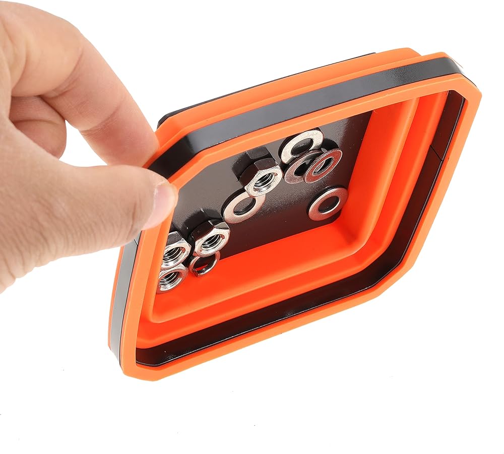 • مع قاعدة مغناطيسية: تحتوي قاعدة صينية الأجزاء المغناطيسية على مغناطيس مثالي لتخزين البراغي والمسامير والصواميل والغسالات والأدوات المعدنية الصغيرة والأجزاء، مما يساعدك على الحفاظ على منطقة عمل نظيفة ونظيفة ومنظمة