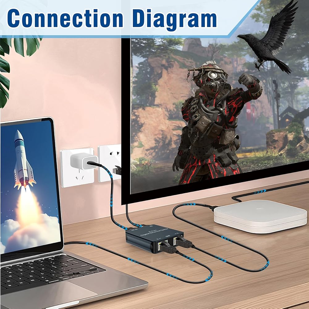 التوصيل والتشغيل: لا يتطلب مقسم الشبكة للمنزل/المكتب أي إعداد أو تكوين معقد. ما عليك سوى توصيله بإعداد الشبكة الحالي لديك، وسيكون جاهزًا للاستخدام، مما يوفر لك الوقت والجهد. تنبيه: لا يمكن استخدامه بدون توصيل الطاقة