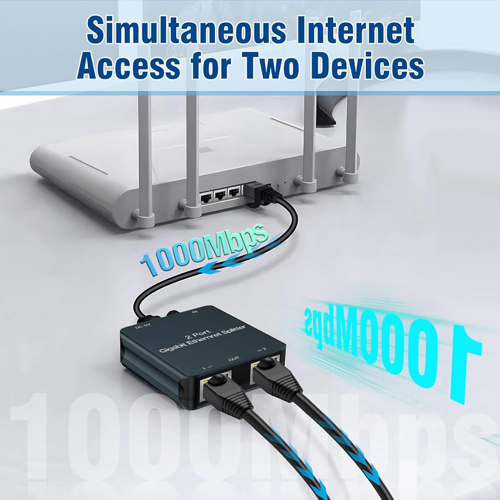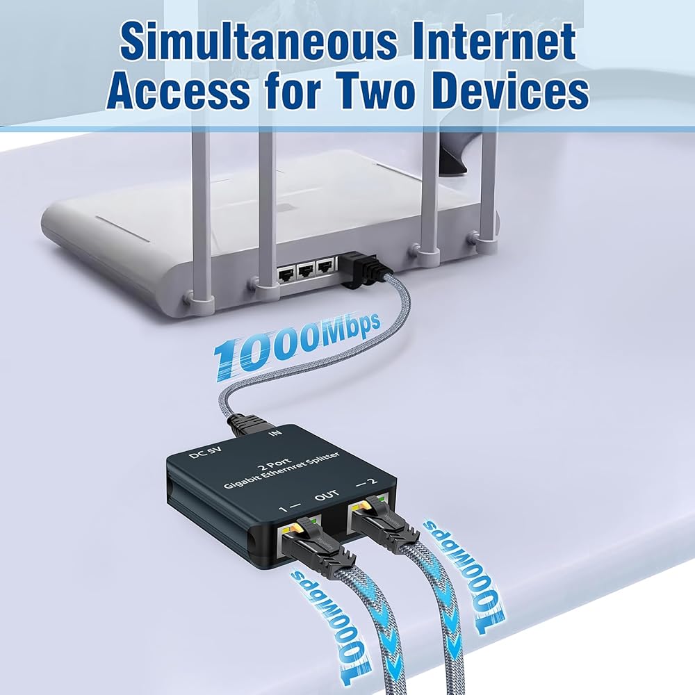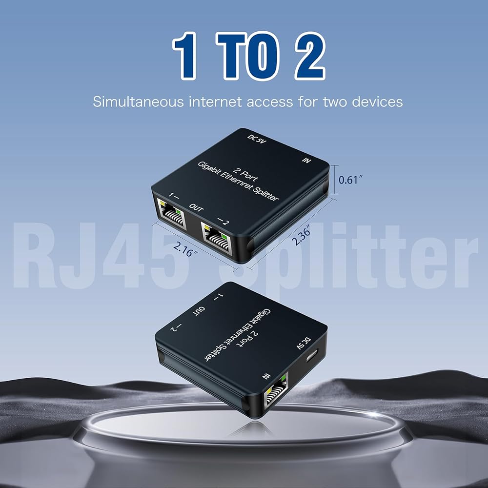 موزع إيثرنت من 1 إلى 2 منافذ: يتيح لك موزع جيجابت إيثرنت المزود بمدخل واحد ومنفذي إخراج، توصيل جهازين في وقت واحد باتصال شبكة واحد، مما يجعله مثاليًا للحالات التي تحتاج فيها إلى منافذ شبكة إضافية