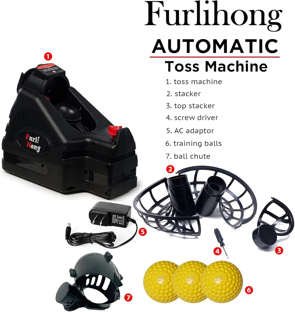 آلة رمي البيسبول والتنس متعددة الاستخدامات من Furlihong 698BH للتدريب الفردي، تعمل بالبطارية أو محول تيار متردد، مجرى كرة قابل للتمديد، تأتي مع كرات مدملة، للأطفال والمبتدئين