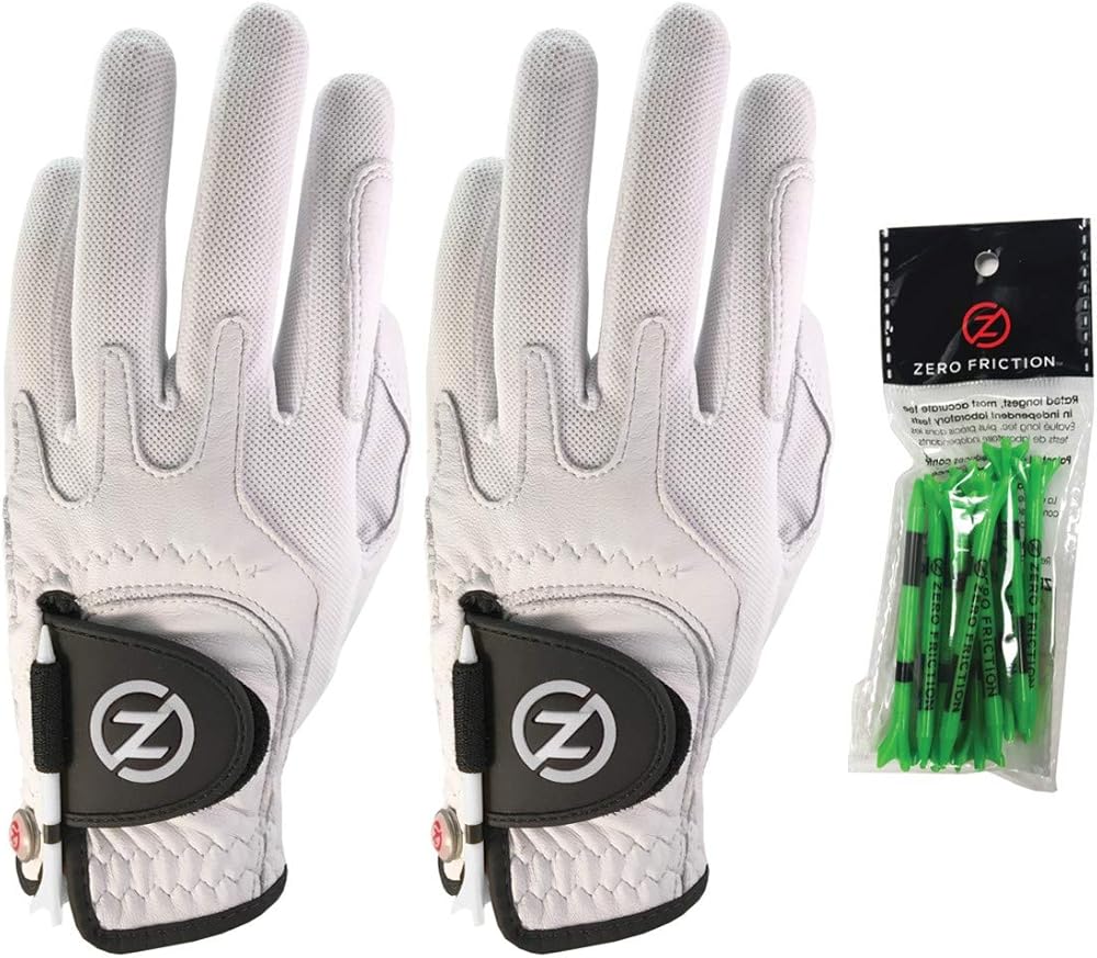 قفازات كابريتا إيليت للجولف للرجال من زيرو فريكشن، عبوة من قطعتين، تتضمن حزمة تي شيرت مجانية، مناسبة عالميًا