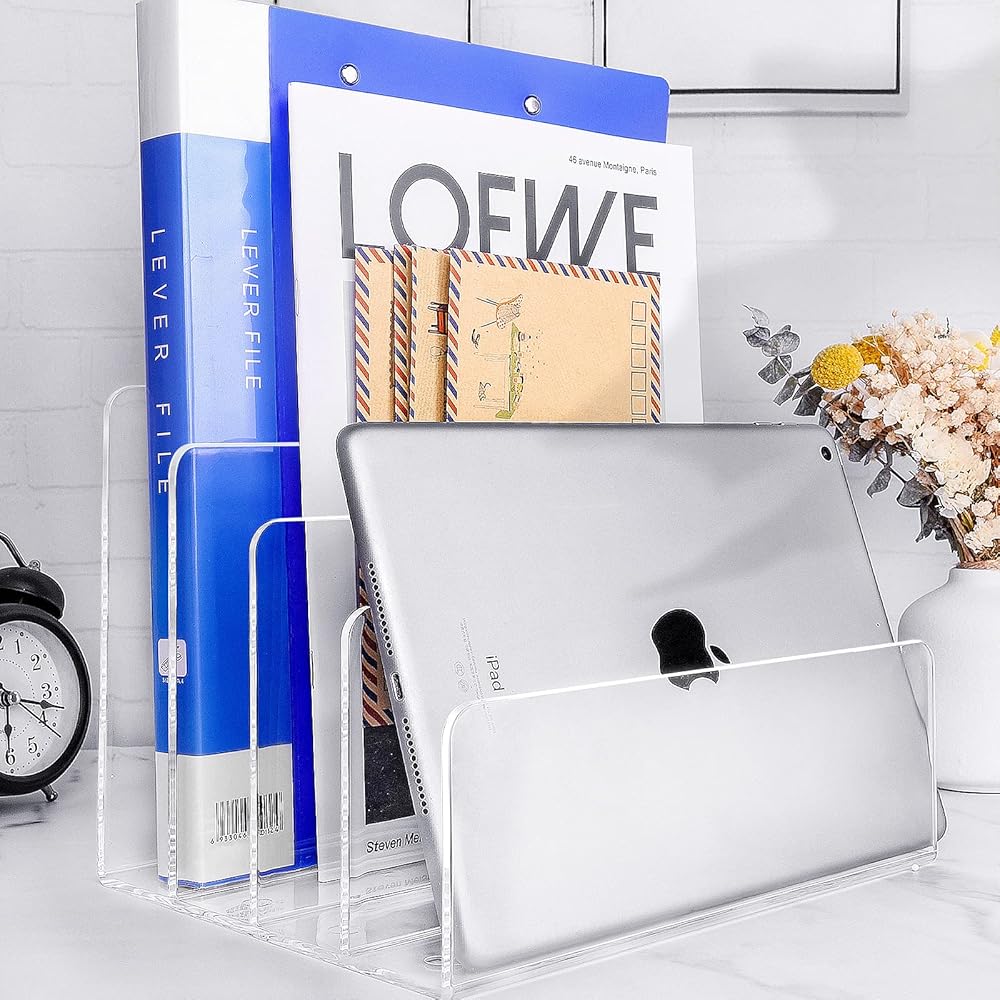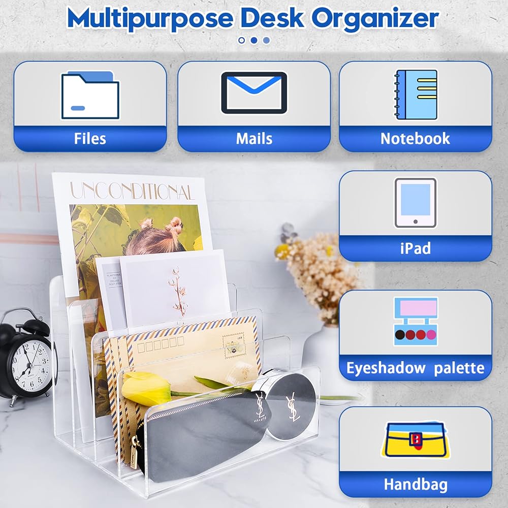 4 Section Acrylic File Organizer, Clear Acrylic Desk Organizer and Accessories, Sturdy Acrylic File Folder Holder Sorter, Office Supplies for Mail Letter Paper Electronic Notebook