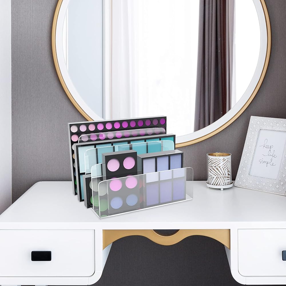 💌【 Multipurpose File Organizer 】- A great organizing solution! Size: 6.8"H x 6.9"L x 8.9"W. The 4 section file sorter is perfect for you to organize file folders, mails, letters, and other documents. It's also big enough to hold the larger makeup eyeshadow palettes on vanity.