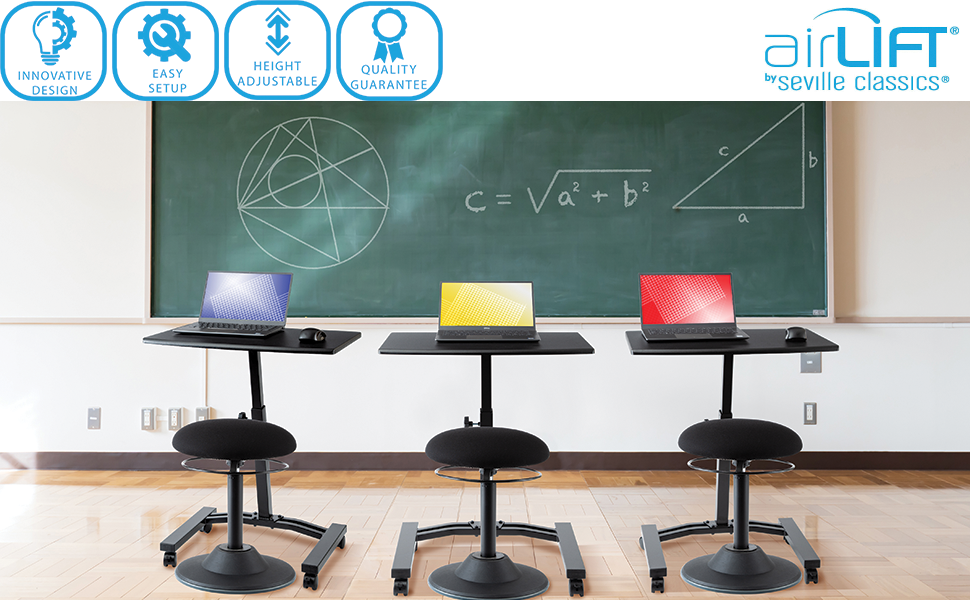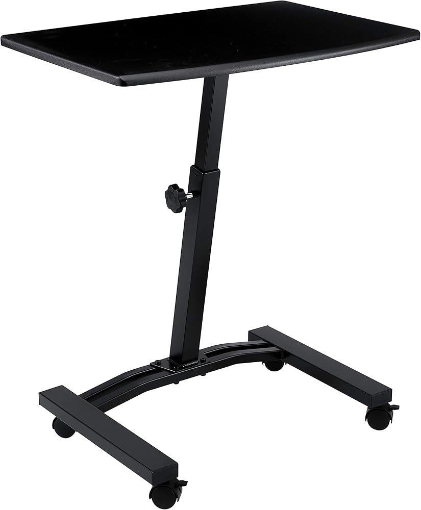 Seville Classics Airlift Height Adjustable Mobile Rolling Laptop Cart Computer Workstation Desk Table for Home, Office, Classroom, Hospital, w/Wheels, Flat (24") (New Model), Black