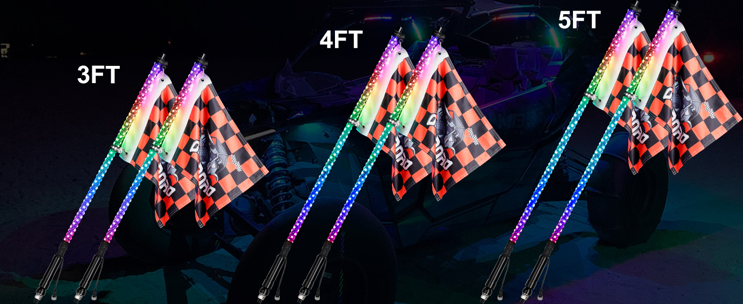 • ⚡【نظام تطبيق متعدد الوظائف】يمكن لمصابيح السوط ATV مع مزامنة الموسيقى ووظيفة الاستجابة الصوتية أن ترقص على إيقاع موسيقى الهاتف أو موسيقى السيارة أو صوتك. يمكنك أيضًا ضبط الوقت لمفتاح مؤقت ضوء السوط. علاوة على ذلك، تتميز سياطنا المضيئة بالتوجيه الأيسر والأيمن، وتزامن تحذير الفرامل والرجوع للخلف من أجل سلامة القيادة، وهي إضافة فريدة لا يمتلكها معظم المنافسين.