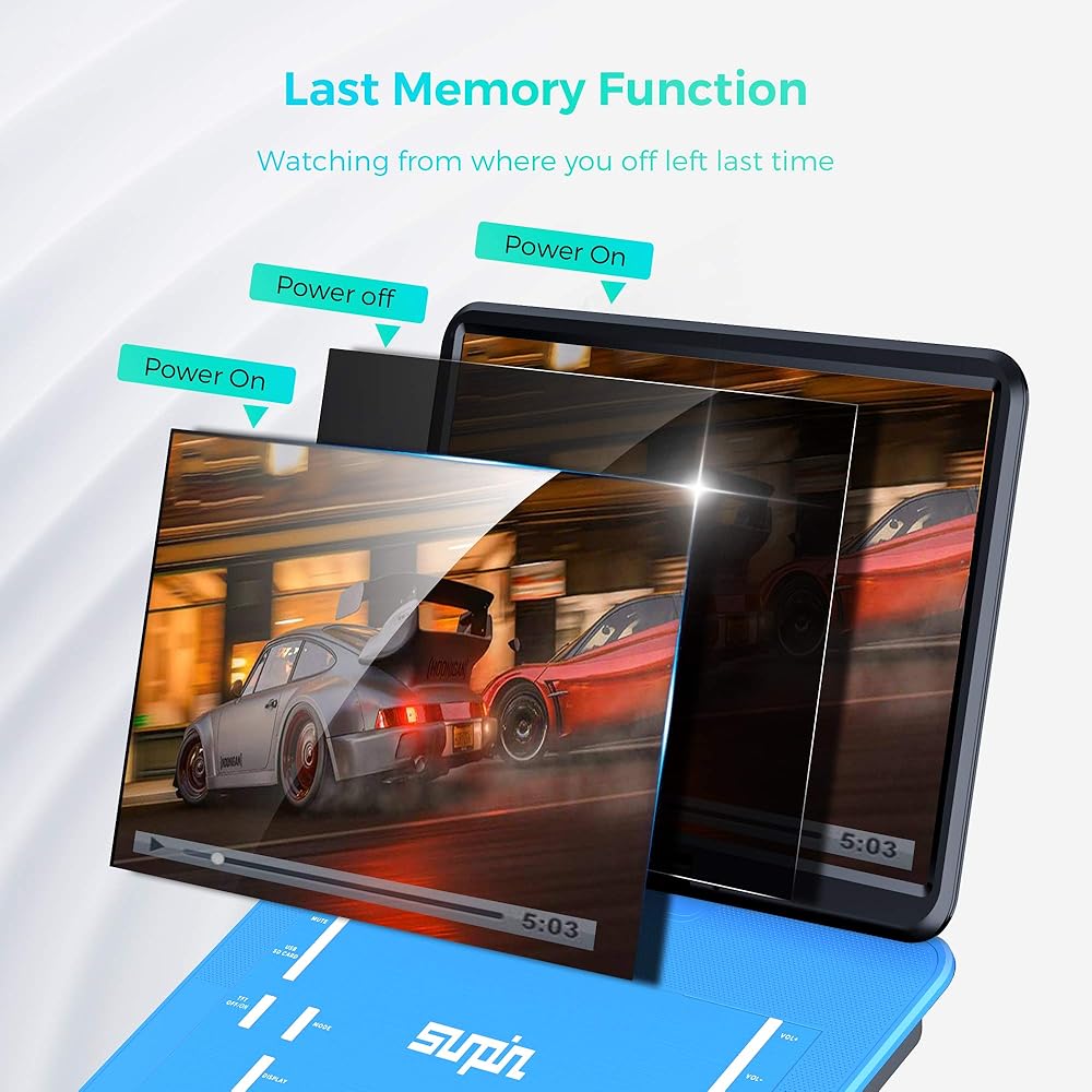 🏆الرفيق المثالي لعائلتك --- الرفيق المثالي لأطفالك الذين يشاهدون الرسوم المتحركة في المنزل. نظام تشغيل بسيط يجعل مشغل DVD المحمول هذا مثاليًا للأطفال وكبار السن. بالإضافة إلى ذلك، يمكنك مزامنة الأفلام على الشاشات الكبيرة باستخدام كابل AV وجهاز التحكم عن بعد المتضمن والاستمتاع بوقت فراغ سعيد لعائلتك. يدعم وظيفة AV-In/Out/Aux Out.