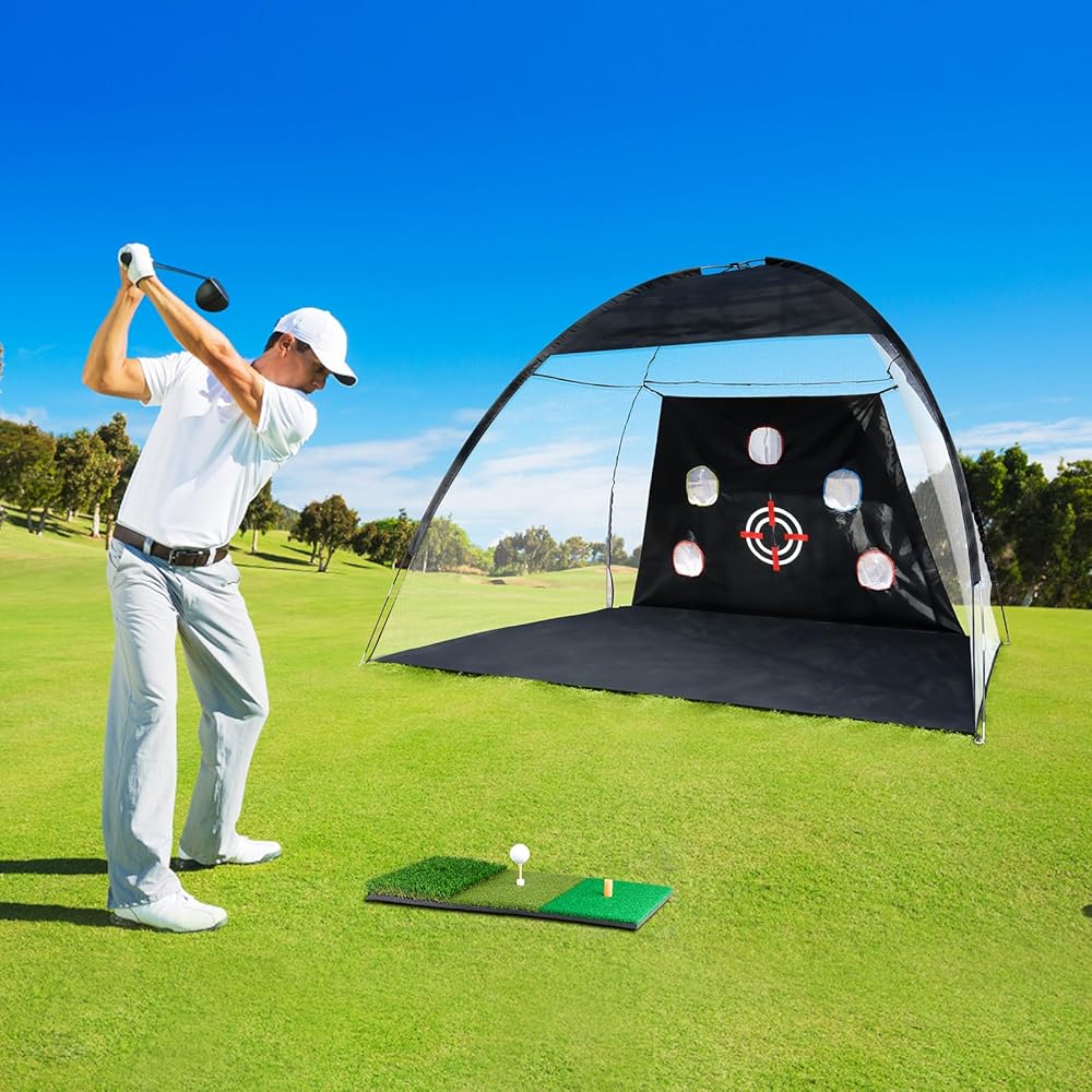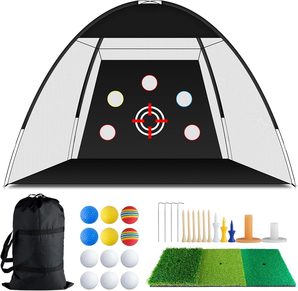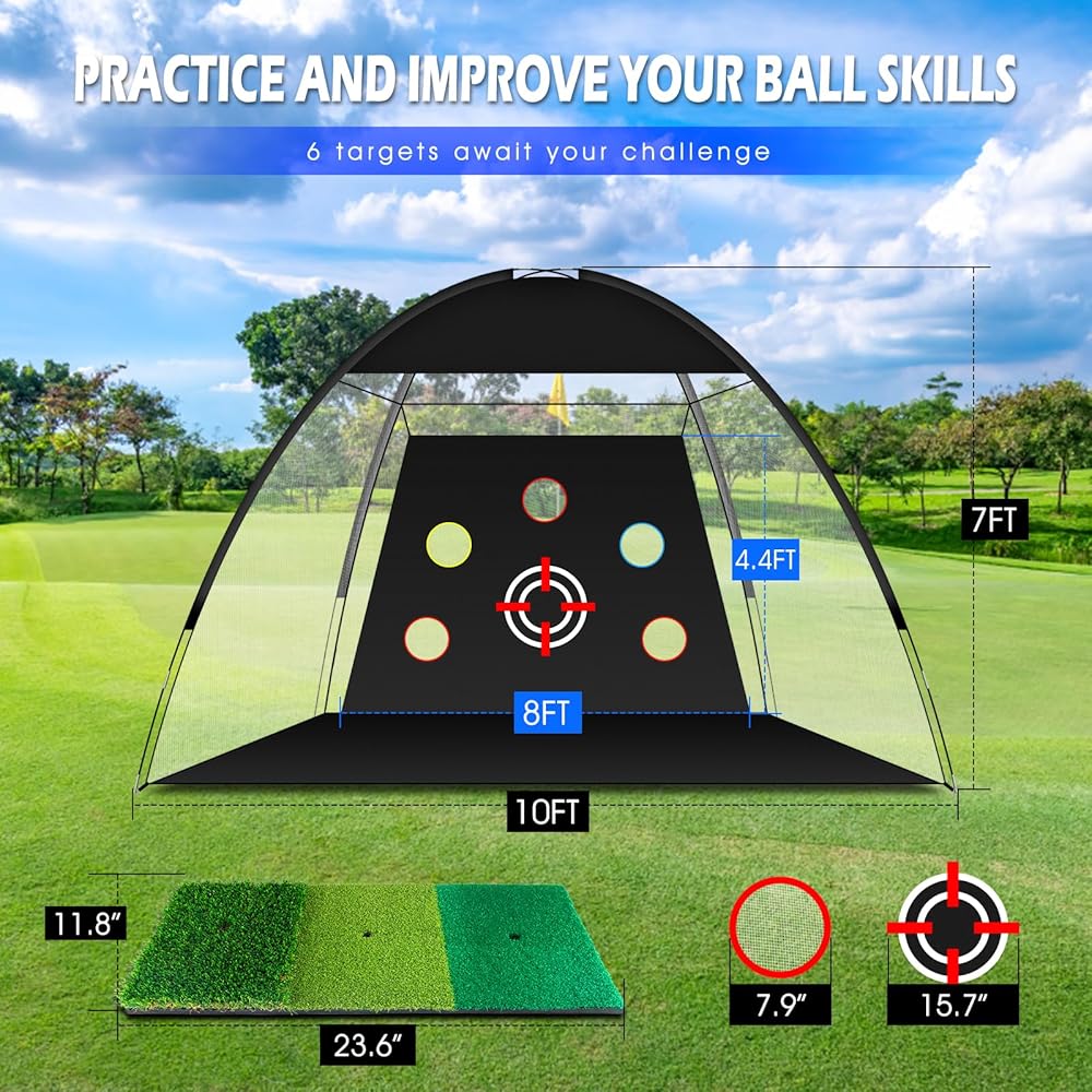 【حجم كبير للغاية وشبكة تدريب متعددة الأهداف】 توفر المساحة الواسعة التي تبلغ 10 × 7 أقدام مساحة واسعة لممارسة المهارات مثل التأرجح والرقائق والملاعب. تأتي شبكات الجولف التي تمت ترقيتها حديثًا لعام 2024 لقيادة كرات الجولف الحقيقية في الفناء الخلفي مع هدف كبير واحد وخمسة جيوب صغيرة مستهدفة. الهدف الكبير مثالي لصقل مهارات التأرجح الأساسية، في حين أن الجيوب المستهدفة الصغيرة مثالية لتحسين الدقة والتحكم في الطاقة. مناسبة للمبتدئين والمبتدئين ولاعبي الغولف المتقدمين.