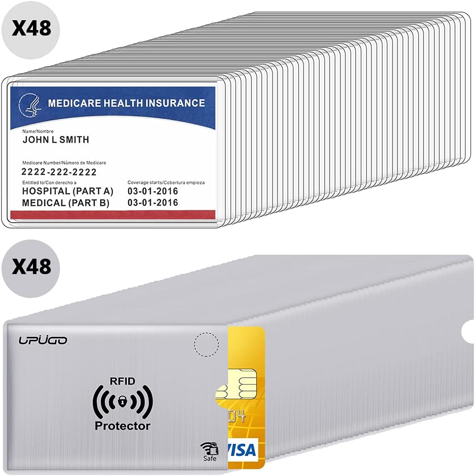 48 Pack 12mil New Medicare Card Protector Sleeves and 48 Pack RFID Blocking Card Sleeves for Insurance, Social, Security, Metro, License, Credit Cards