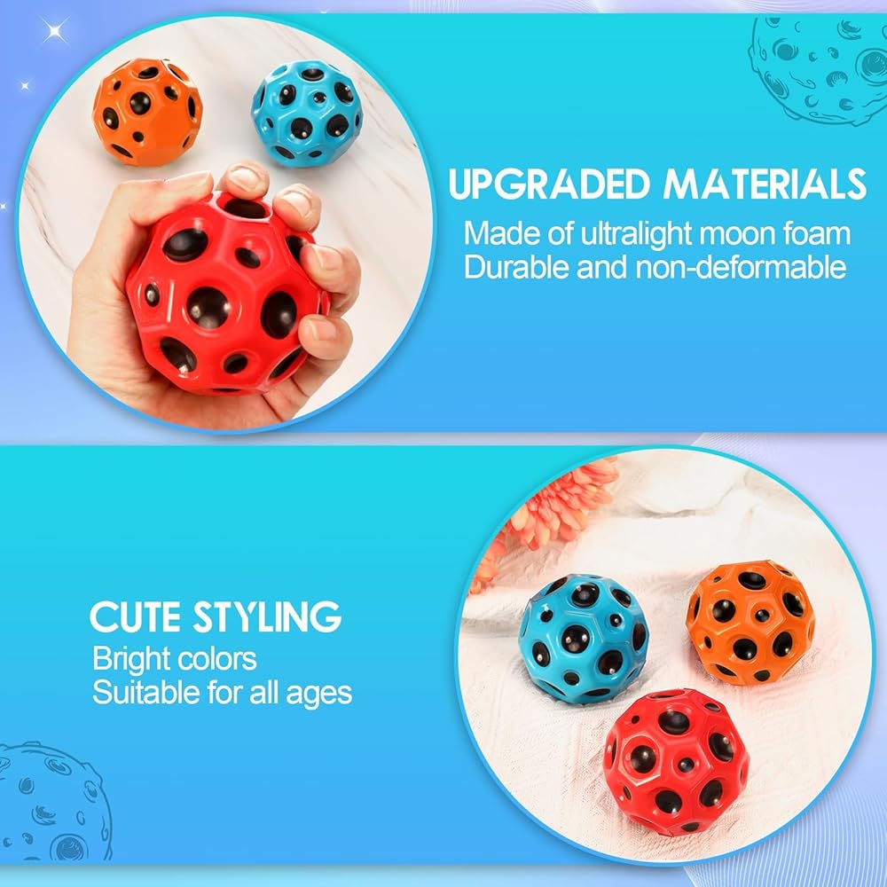 【Popular Sound Effects】- Popular sound effects, durability - The impact of the bouncing space ball on the sidewalk will produce a unique sound Durability meets quality! This space ball is made of high-quality materials to ensure that can enjoy hours of laughter and entertainment, help you relax and enjoy a good time with your relatives.