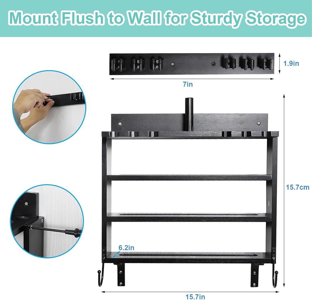 • 【رف حمام السباحة】: رف عصا حمام السباحة من جوليبيرا هو حامل عصا حمام السباحة مثبت على الحائط عالي الجودة يوفر دعمًا آمنًا لجميع ملحقات طاولة حمام السباحة الخاصة بك. مصنوع من الخشب الصلب بنسبة 100%، هذا الرف المتين والقوي هو حل تخزين أساسي لعشاق البلياردو.