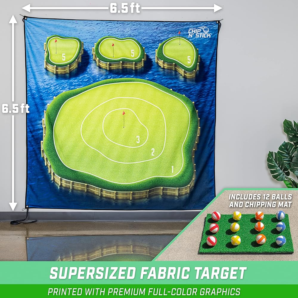 المجموعة الكاملة: تتضمن اللعبة هدف لوحة رمي السهام، و12 كرة جولف من نوع Chip N' Stick، ولوحة نتائج رمي السهام، وحصيرة ضرب للعب على أسطح متعددة في الداخل أو الخارج؛ مضارب الجولف غير متضمنة (نوصي باستخدام إسفين أو إسفين رملي أو إسفين لوب للحصول على أفضل النتائج)