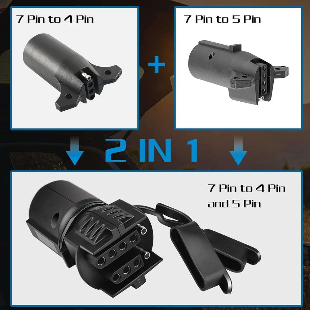 🐫 【7PIN إلى 4/5 PIN】يحول موصل المقطورة الدائري ذو 7 اتجاهات إلى موصل على شكل RV ذو 4 اتجاهات أو 5 اتجاهات.