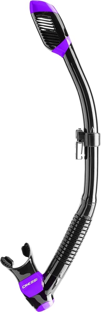 The Supernova Dry is one of the best dry snorkels available in the market. It has a unique Splash Guard at the top which greatly reduces the entrance of water during use on the surface. The special valve on top seals the tube as you dive, almost totally preventing the entrance of water when the snorkel is submerged. The end part has a corrugated piece that is smooth on the inner side and keeps the snorkel away from the mouth during use when scuba diving. A special water collection well, with a large elliptic valve, allows quick and easy expulsion of water. The replaceable angled mouthpiece and corrugated tube section are both made from Hypoallergenic Silicone adding comfort and function. A quick-release snorkel keeper and ergonomically contoured shape make this one great snorkel. The Supernova Dry is designed in Italy by Cressi and made in Taiwan. Cressi has been an Italian brand pioneer in scuba diving, snorkeling, and swimming equipment since 1946. The product is covered by a 2-year limited warranty.