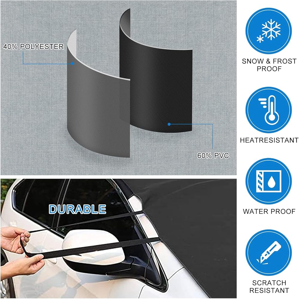 Windshield Cover for Ice and Snow, Car Windshield Snow Cover with Magnetic Edges, Windshield Frost Cover Ice Removal Wiper Protector with Side Mirror Covers, Fit Most Car