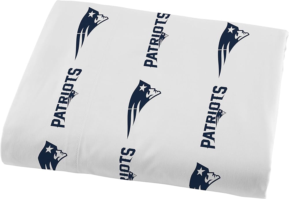 Features a repeating print of team name and logos on the comforter and pillowcase, on a team-colored background