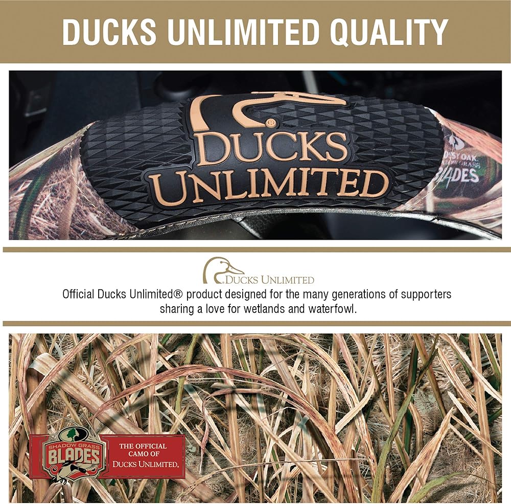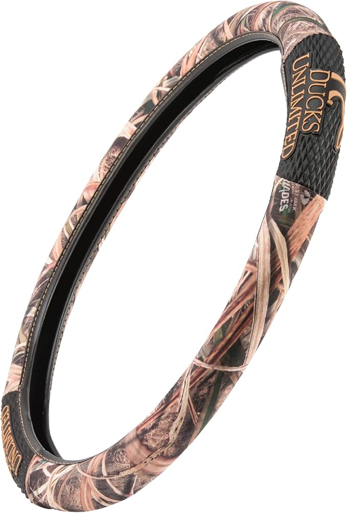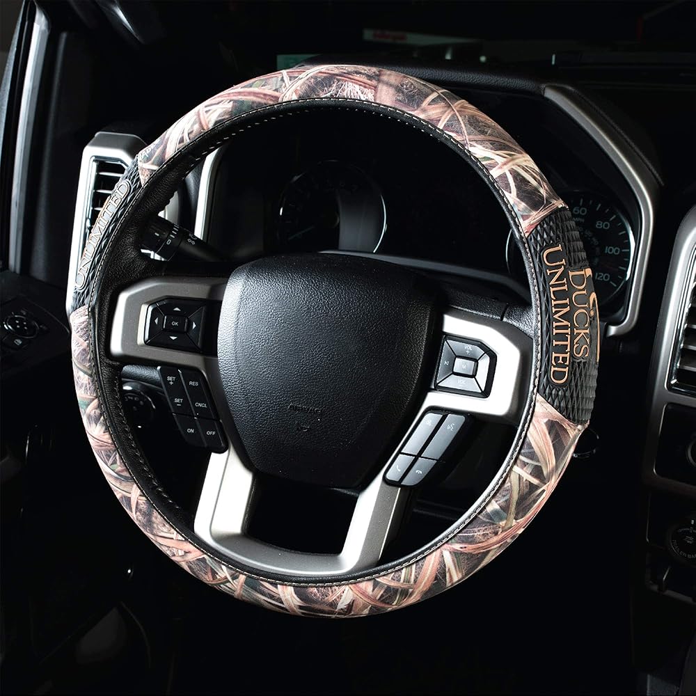 Update the look of your vehicle with a durable hunting inspired Ducks Unlimited Steering Wheel Cover. Protect your steering wheel and hands year round from heat or cold.