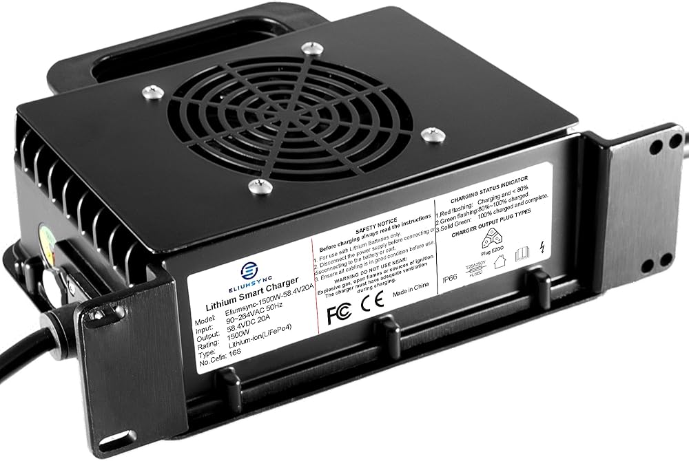• [شاحن بطارية LiFePo4 58.4V20A 16S] تقييم شاحن بطارية ليثيوم 1500 وات 58.4 فولت 20 أمبير 3 دبابيس شحن قابس مثلث 48 فولت 16S LiFePo4 بطارية EZGO RXV وعربات الجولف TXT
