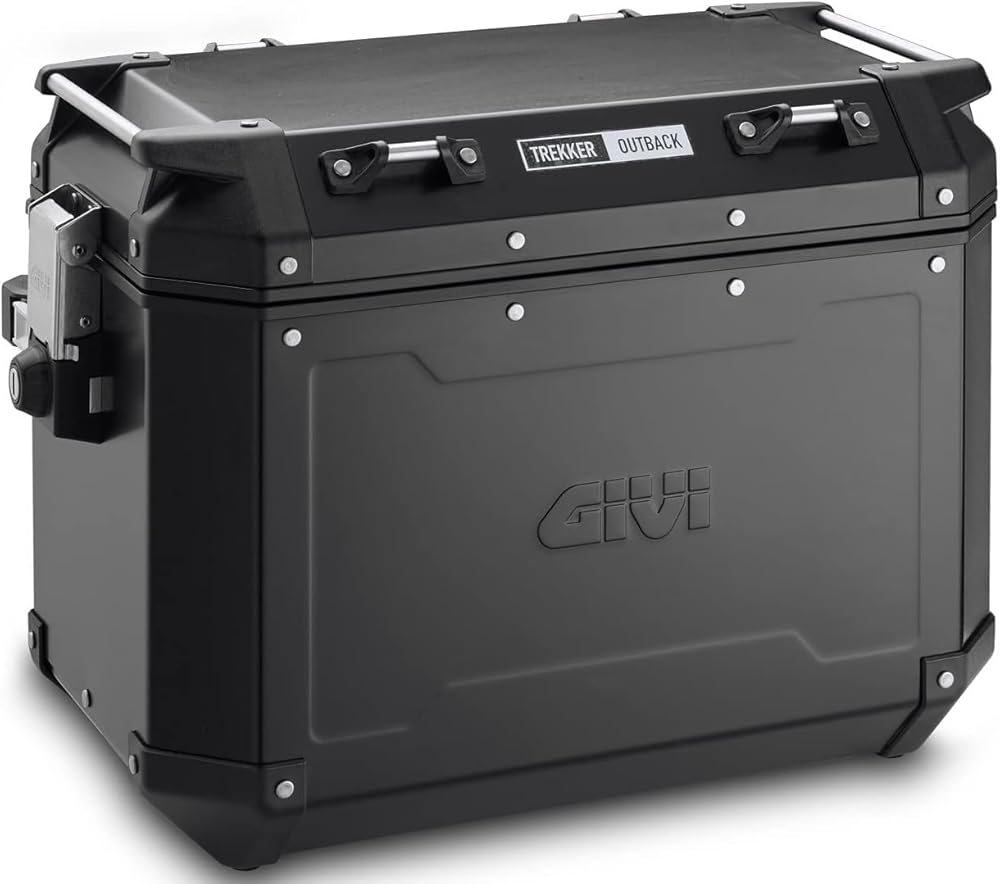 The GIVI OBKN58AA OUTBACK 58 ltr top-case offers the capacity to store either two full-face or two modular helmets The flat lid and four strap loops are standard equipment on the OUTBACK cases and enable the lid to be used as additional storage space, whilst in the interior of the case, the underside of the lid can also be used for storage using the optional elasticated net which can be secured using the existing hooks. The standard features also include a soft internal mat, which when placed in the base of the case, will absorb shocks transmitted during riding. A range of optional accessories is available to fully customise the cases within the Trekker Outback range. Attention: cannot be fitted onto plates with an installed electrical contact for a stop light kit