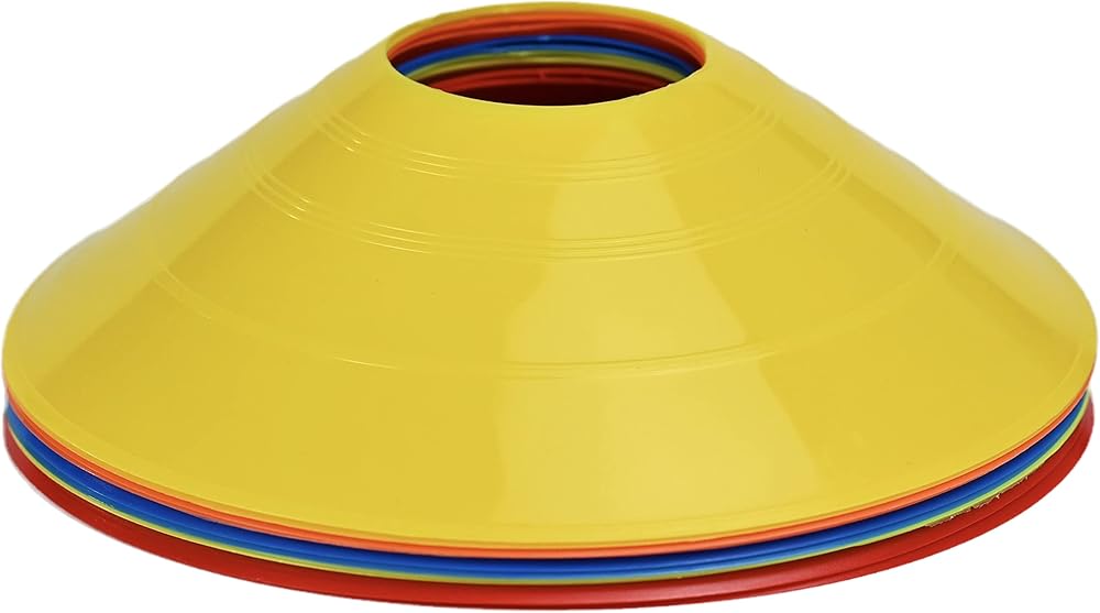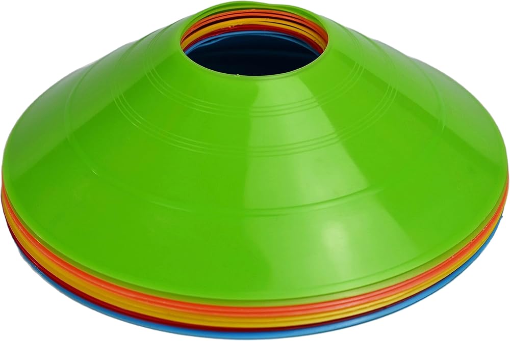 10 Pack Durable Disc Cones Sets Playing Field Cones Marker Disc Cones for Agility Training, Football, Kids, Sports, Field Cone Markers (5 Colors) Measures: 1.9 high, and has a diameter of 7.67 (5x19.5cm) Disc cones set is primarily used for flexibility training for obstacles designs. Soccer, football, baseball, basketball, skating, skateboard, etc. Include: 10 soccer cones(5 colors:red,orange,yellow,green,blue).