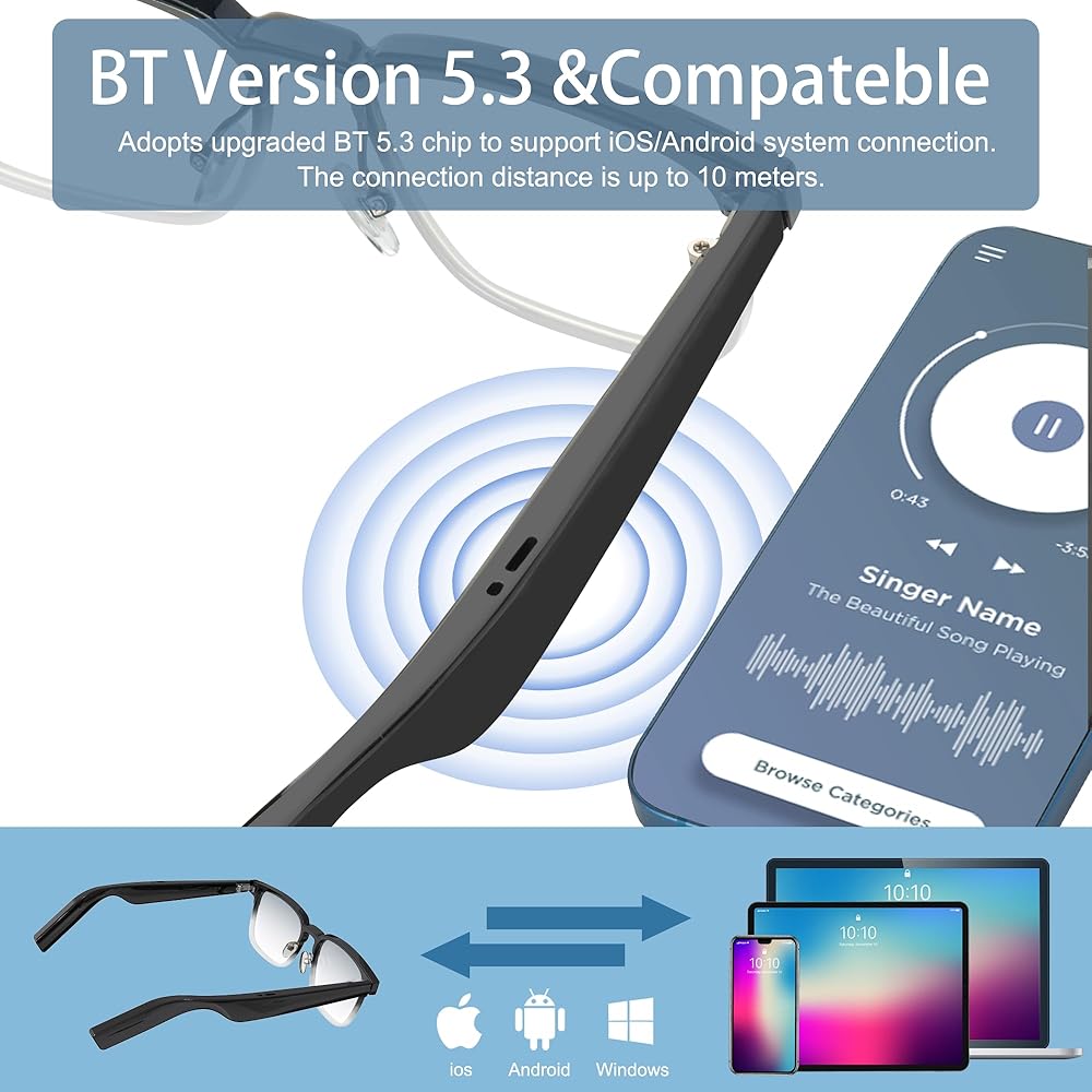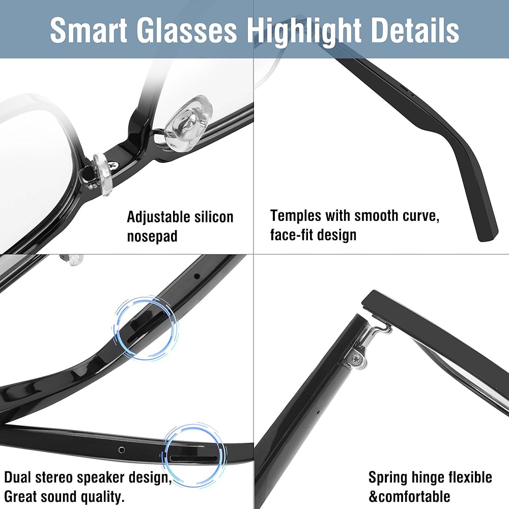 Advanced design and UV protection: It adopts high-fidelity shielding design to ensure smooth transmission, full sound quality and large band amplitude, avoiding the defects of common wires in the market with multiple skips. The glasses can provide 99% UV protection to keep your eyes from blue light and UV damage;