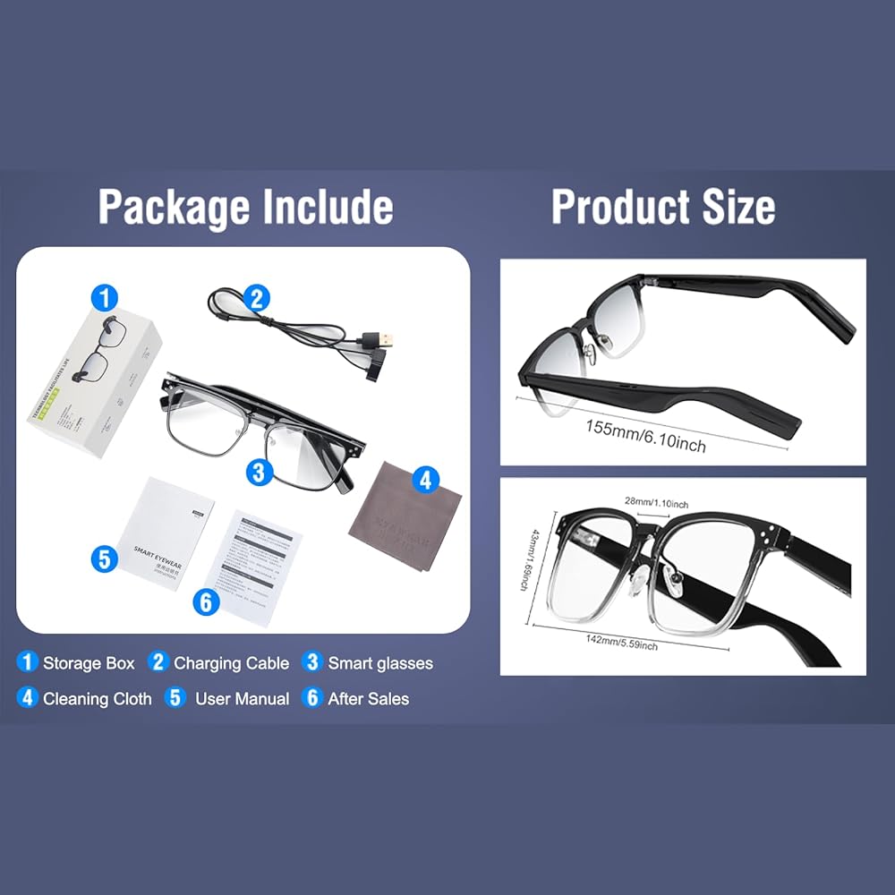 What can you get: a one-year warranty and a pair of anti blue light Bluetooth glasses with 1 magnetic charging cable. We are happy to receive any information about the product.