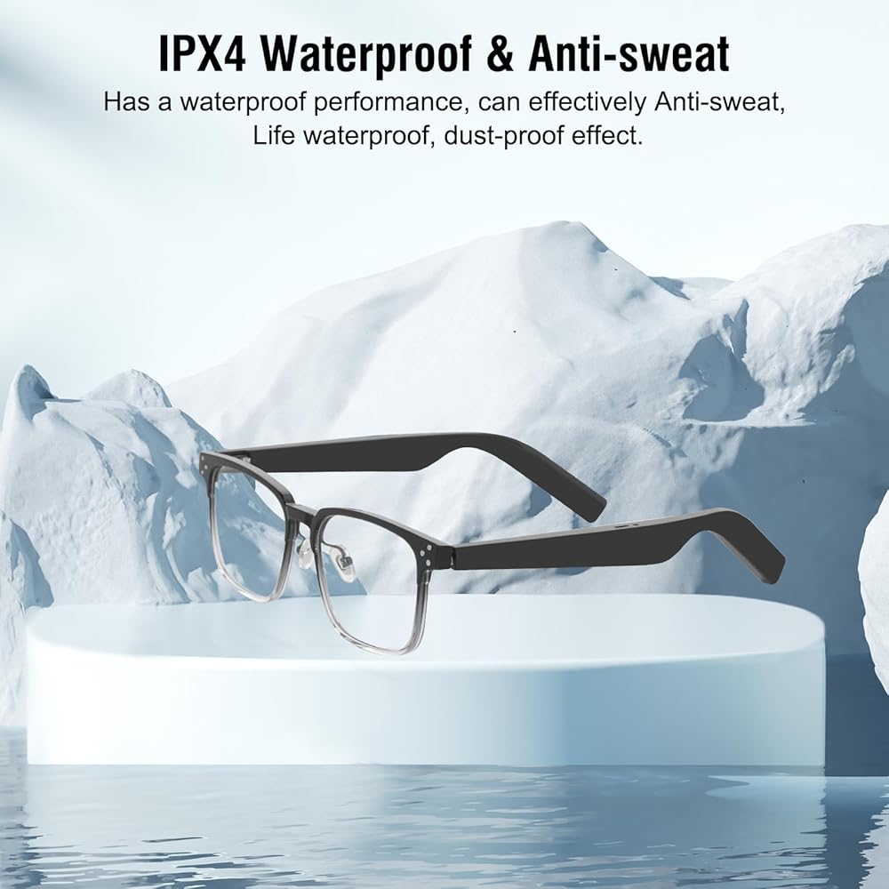High Quality, Waterproof: There is a strong waterproof effect, can effectively resist sweat and rain, so you can easily enjoy sports, music and calls; weight of only 60G, release the weight of both ears, tough material, strong and durable, elegant and beautiful, made of high-quality TR90 material glasses legs of the simple style, including smart Bluetooth headset, micro-vibration original, renewal and other high-tech accessories;